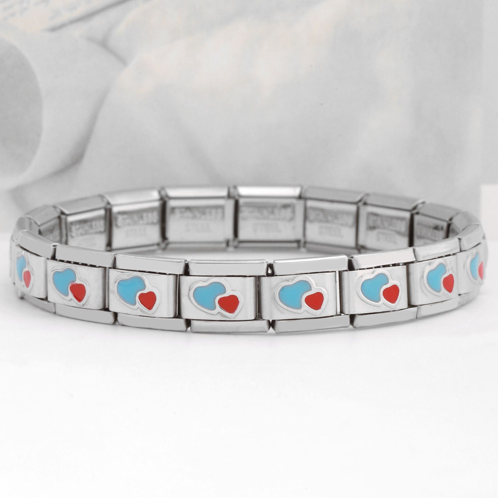 AliExpress Venta caliente DIY9mm módulo pulsera amor corazón doble melocotón corazón joya serie de costura de acero inoxidable pulsera de una sola pieza