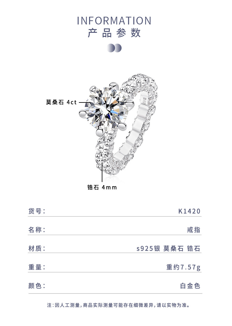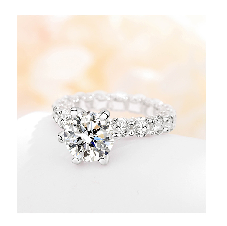 Damila 4 quilates de seis garra moissanite anillo femenino s925 plata esterlina con incrustaciones de circón anillo de propuesta de alta calidad