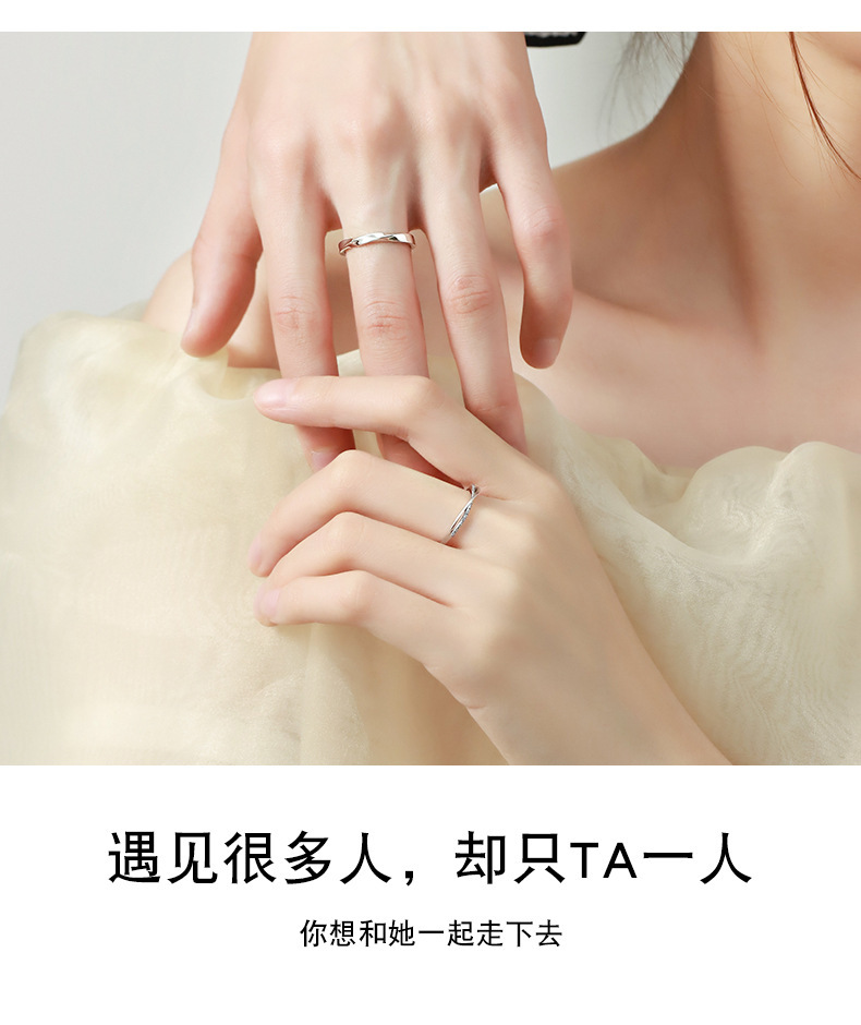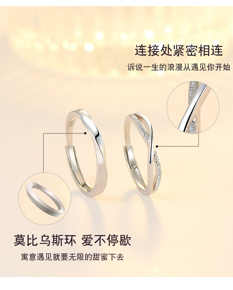 Nuevo s925 plata esterlina cumplir feliz pareja anillo un par de nicho simple diseño hombres y mujeres anillo abierto al por mayor