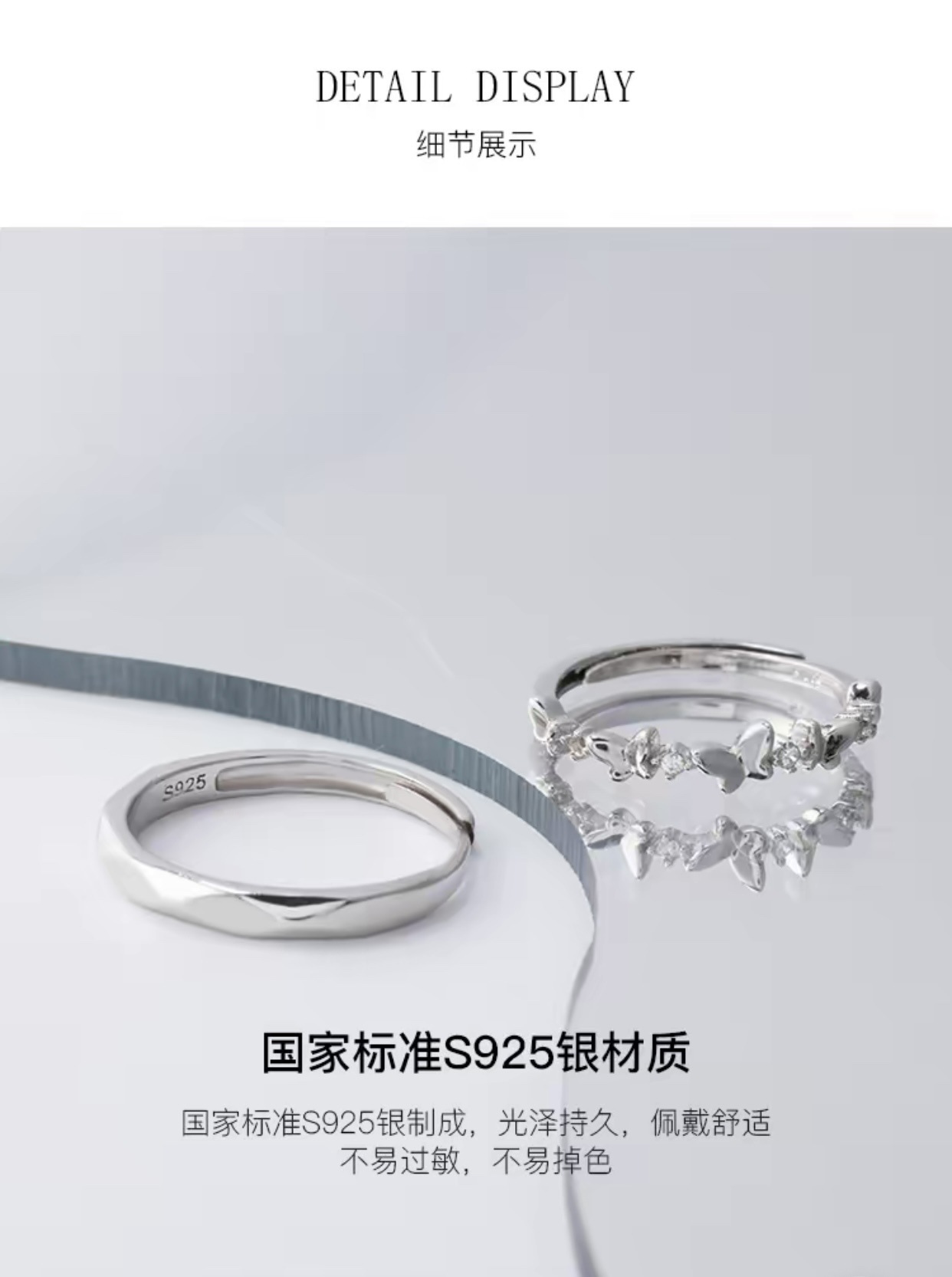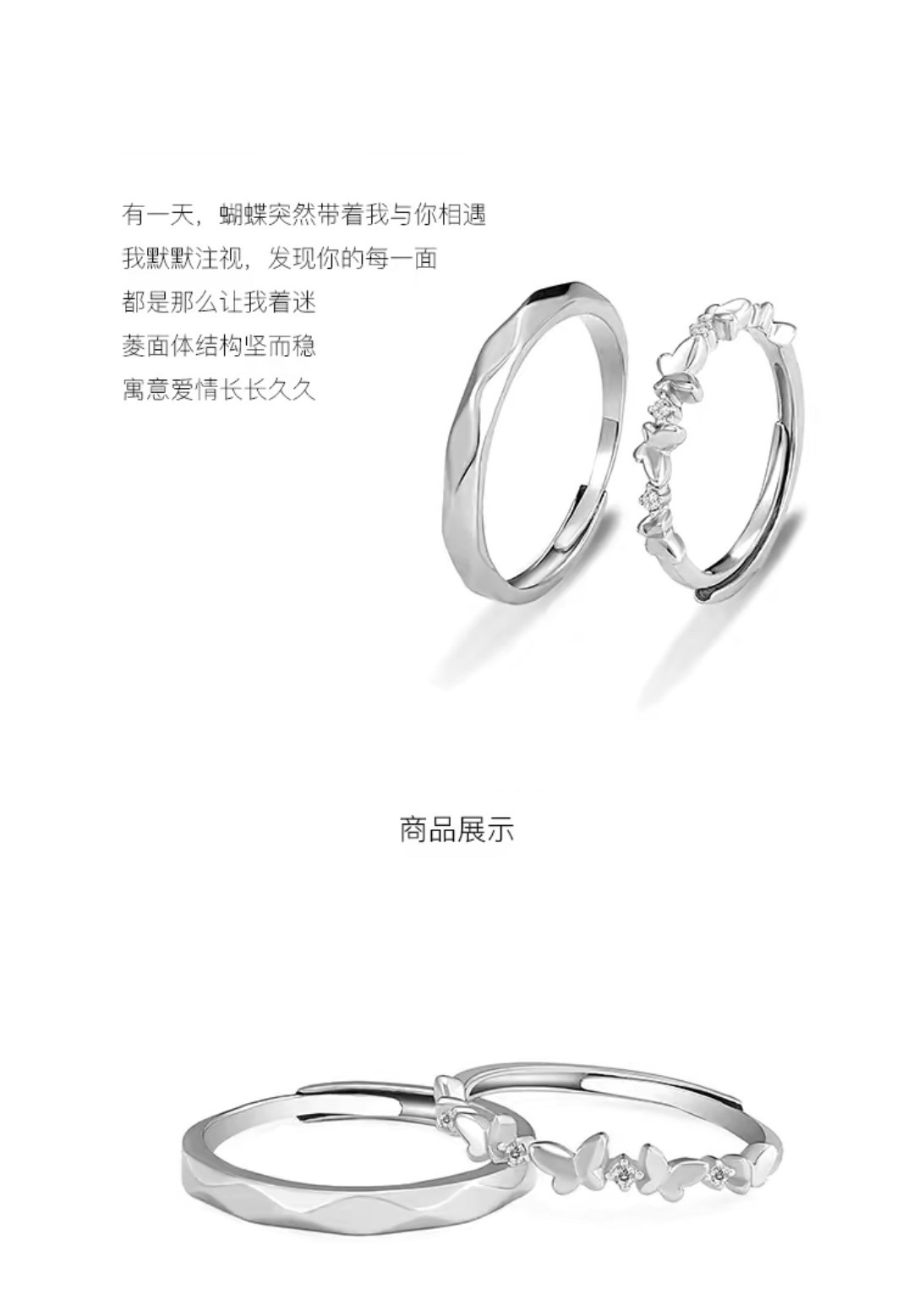 Nuevo s925 plata esterlina micro-con incrustaciones de mariposa par anillo un par de nicho diseño hombres y mujeres fuente de anillo abierto venta al por mayor