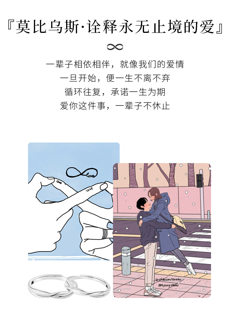 Mobius anillo S925 pareja anillo de plata esterlina un par de nicho diseño de moda anillo ajustable fuente al por mayor