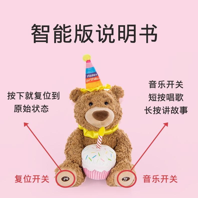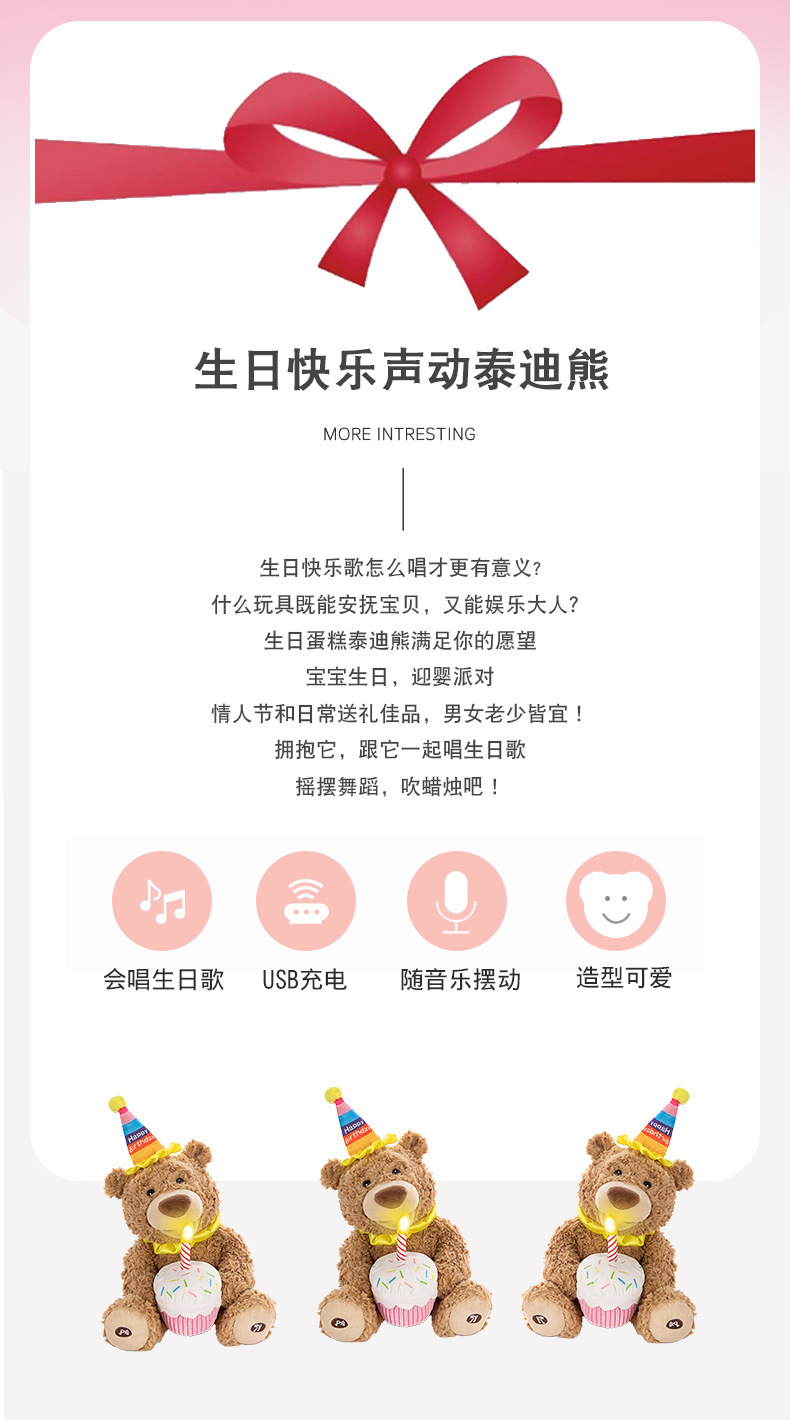 Tiktok pastel de cumpleaños oso de peluche muñeca eléctrica canto oso muñeca niños juguete de peluche regalo de cumpleaños