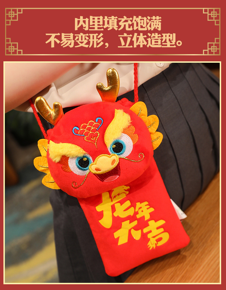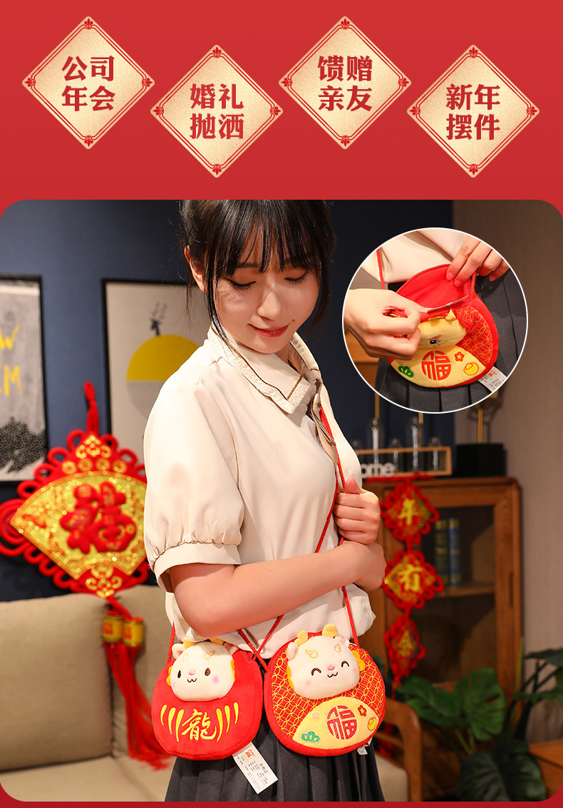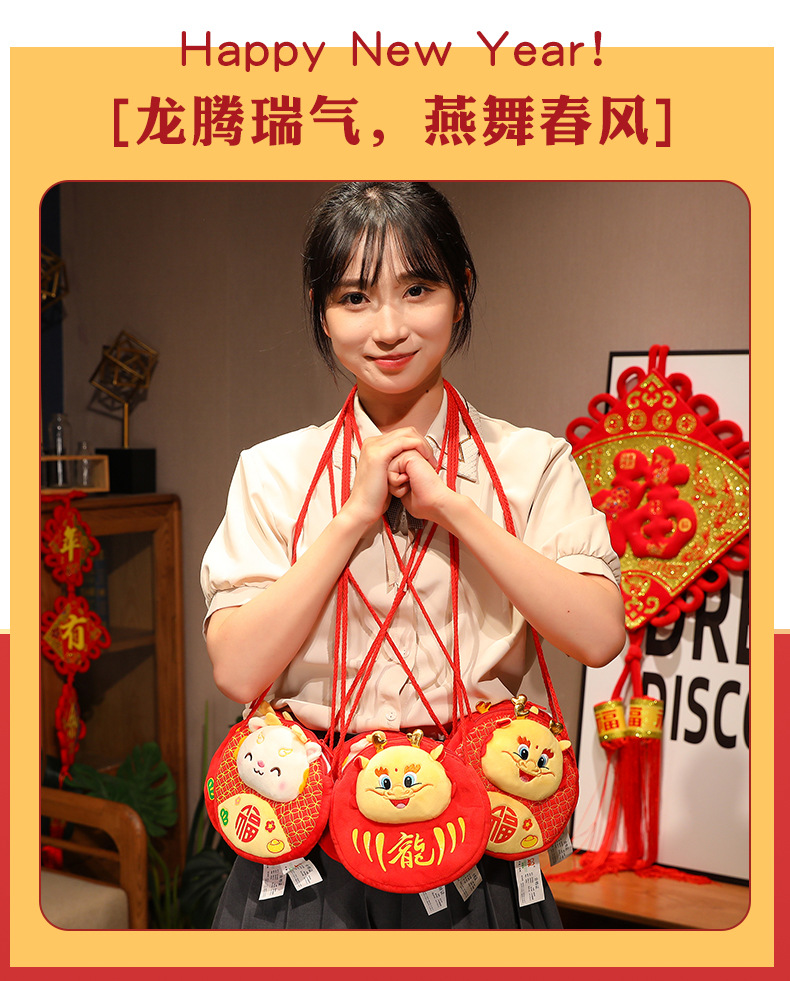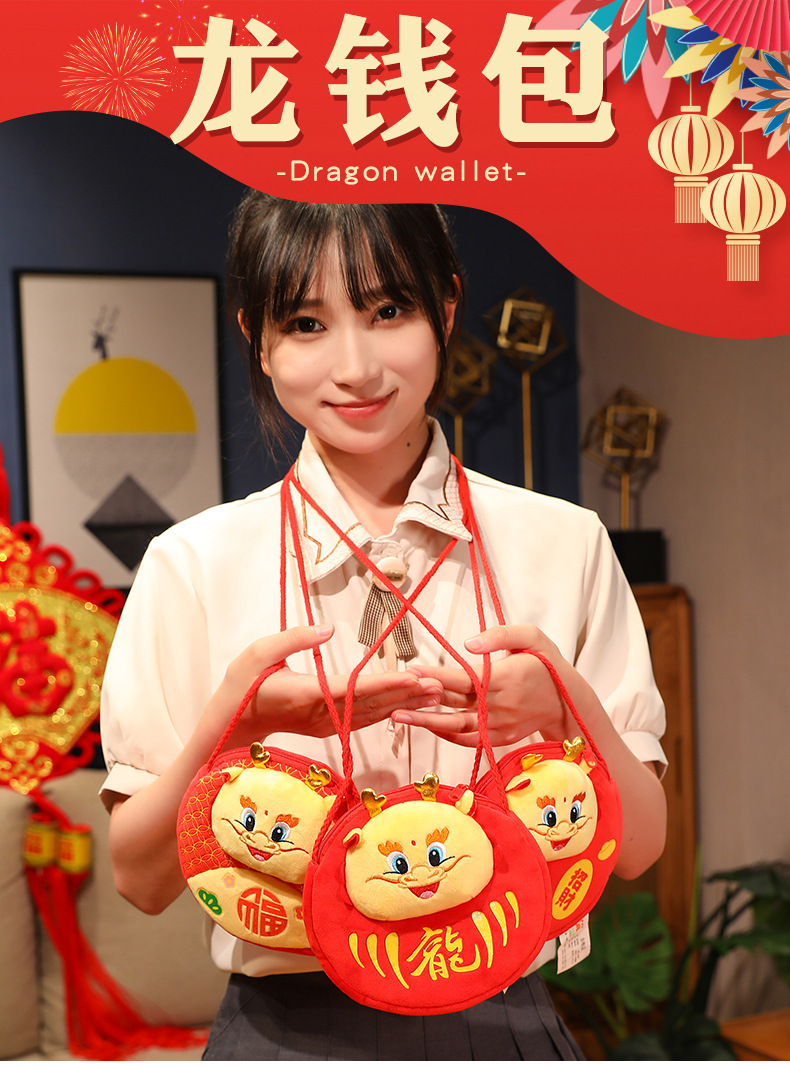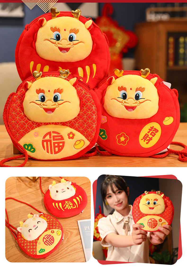 Moda nacional dragón año mascota monedero juguete de La felpa los niños dibujos animados grifo crossbody bolsa muñeca Puerta Abierta regalo rojo
