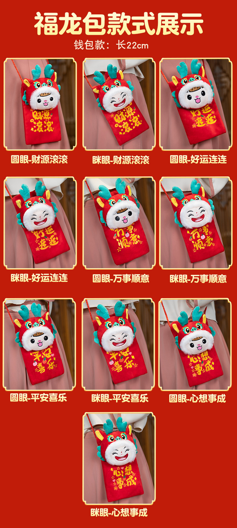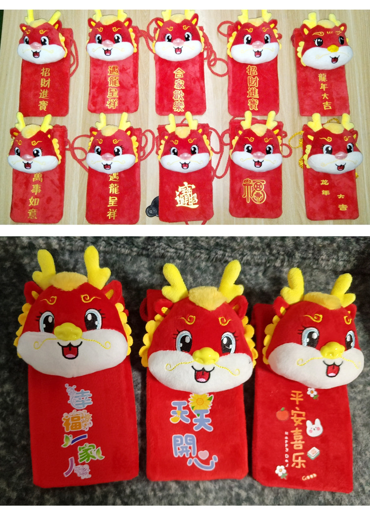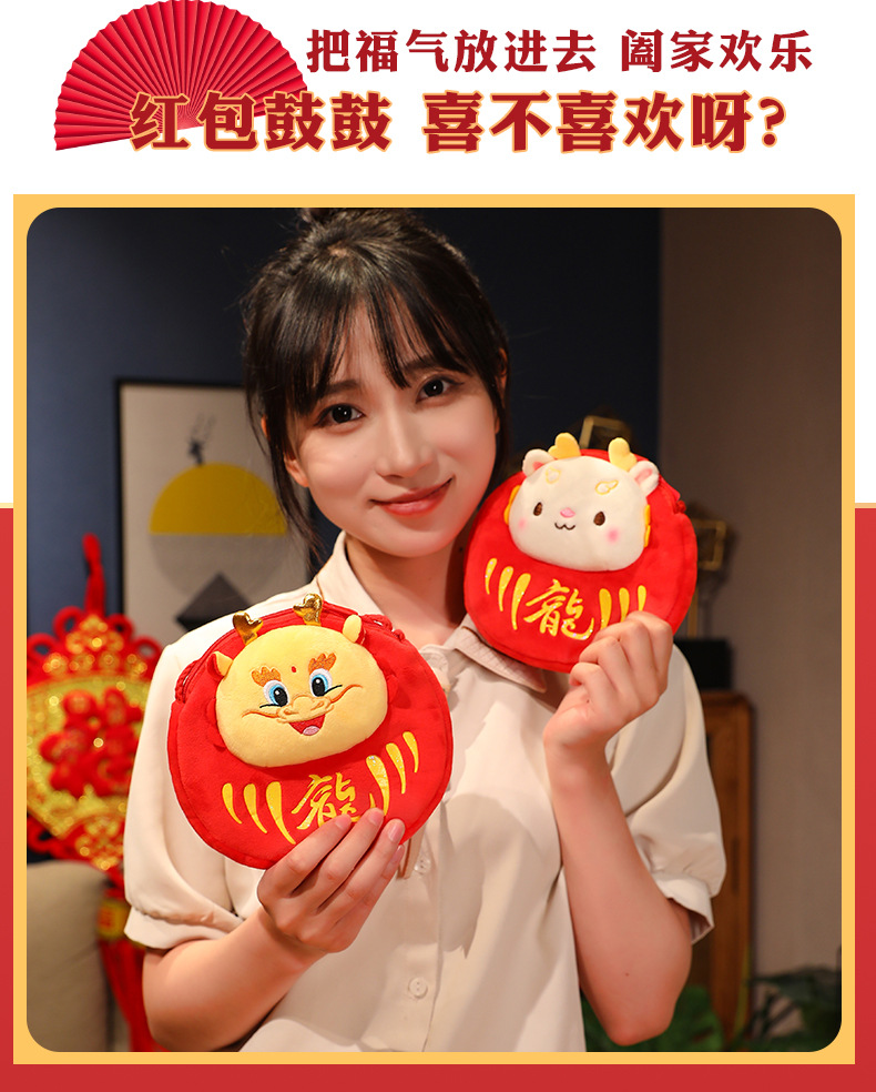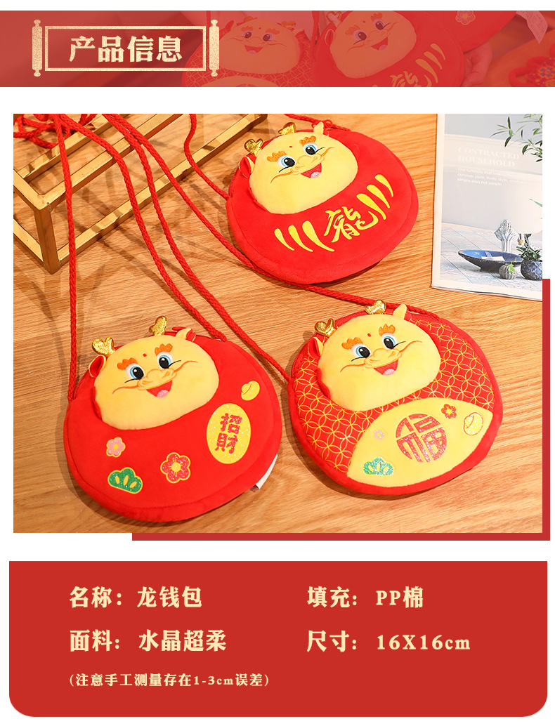 Moda nacional dragón año mascota monedero juguete de La felpa los niños dibujos animados grifo crossbody bolsa muñeca Puerta Abierta regalo rojo