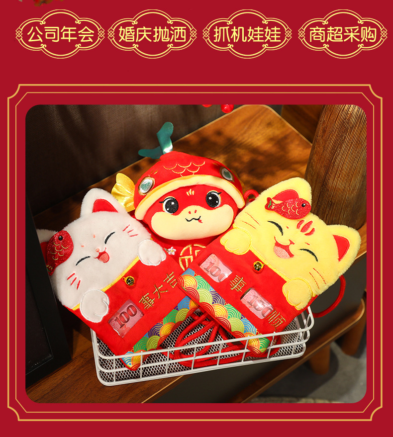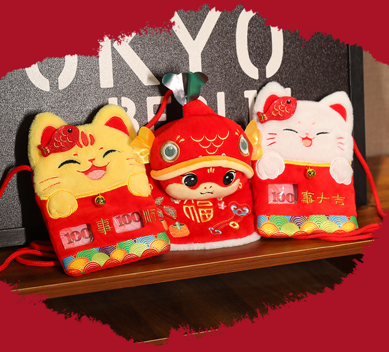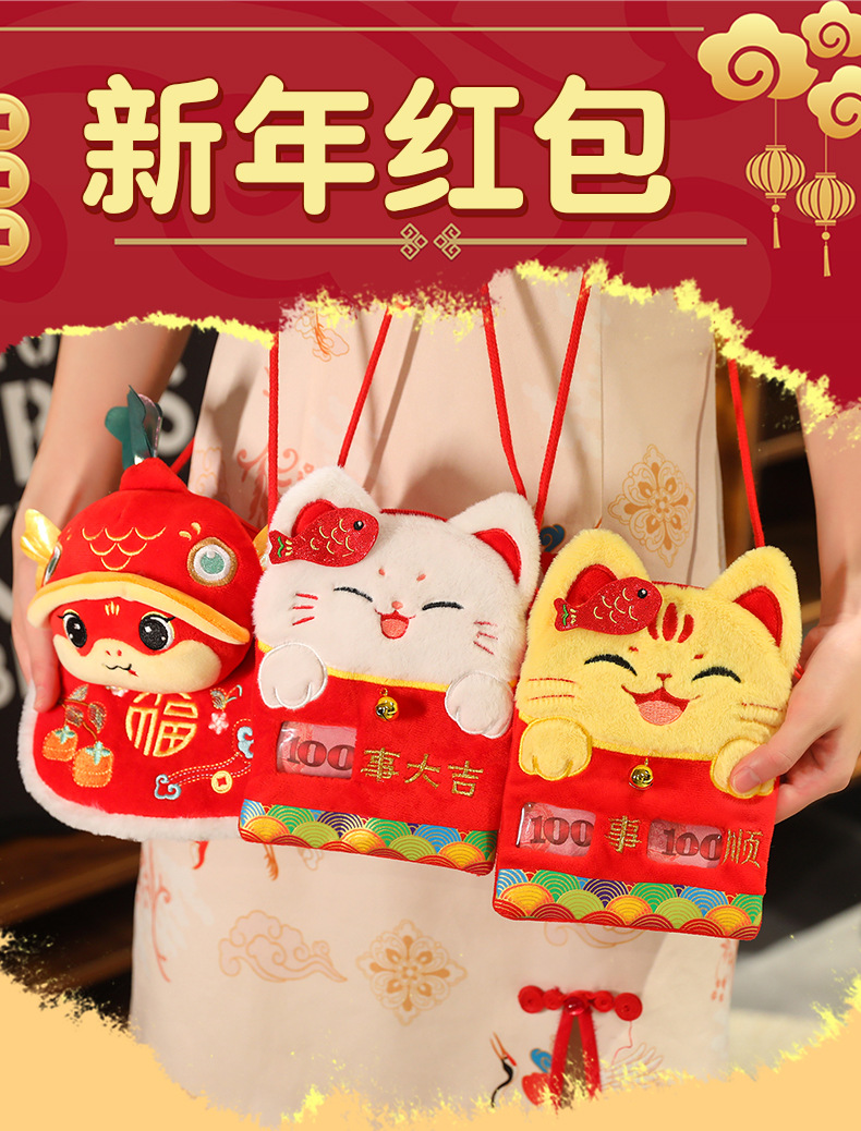 2025 Monedero de dinero de año nuevo, sobre rojo de año nuevo, mascota del año de la serpiente, juguete de peluche, regalo de la reunión anual para niños