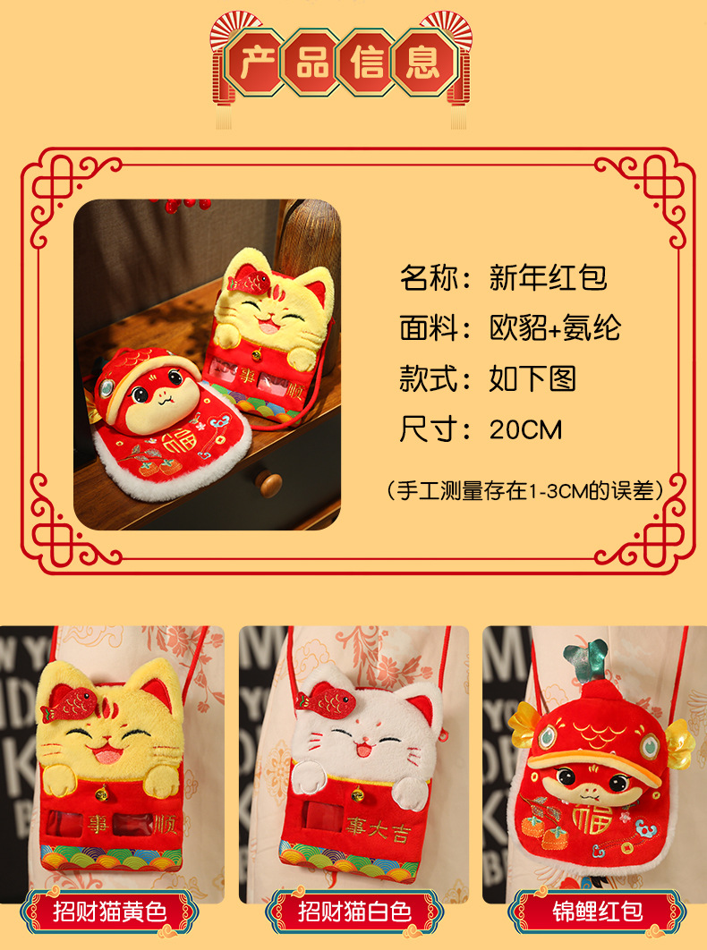 | Colores | Sobre rojo koi [20 cm],Lucky Cat Amarillo [20 cm],Lucky Cat Blanco [20 cm],Las bayas tienen problemas [20*12 cm],Buena suerte [20*12 cm],Cable de tracción sobre rojo-azul [20*12 cm],Tacar sobre rojo-rojo [20*12 cm],Cable de tracción sobre rojo-amarillo [20*12 cm],Bolsa de serpiente dorada-rojo [22*20 cm],Bolsa de serpiente dorada-amarilla [22*20 cm] |