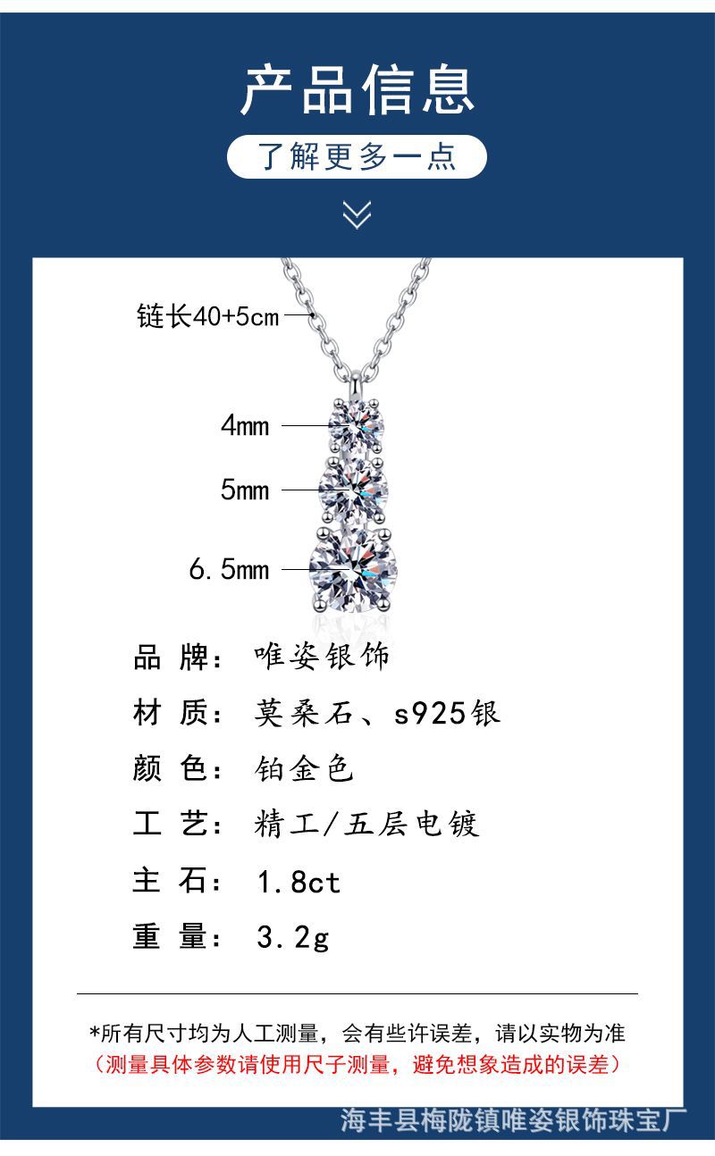 S925 colgante de plata esterlina mujer Sansheng piedra luz lujo 1,8 quilates moissanite colgante collar mujer D color diamante collar