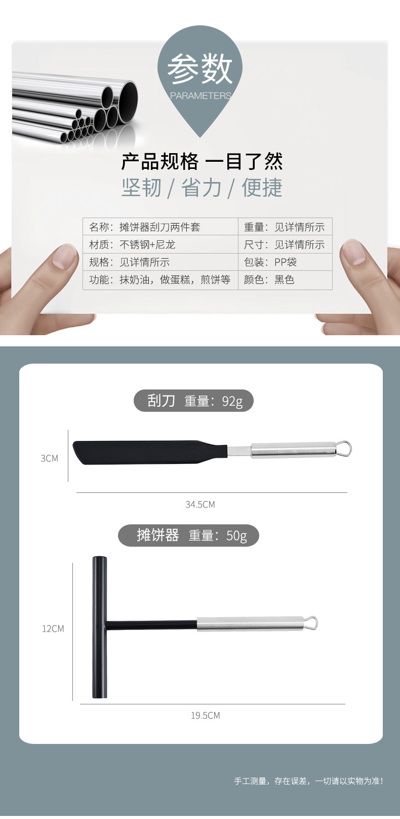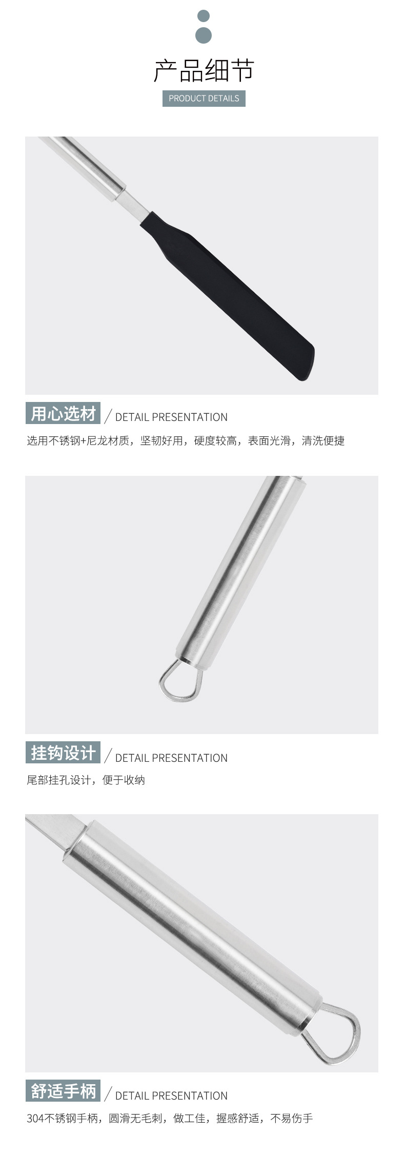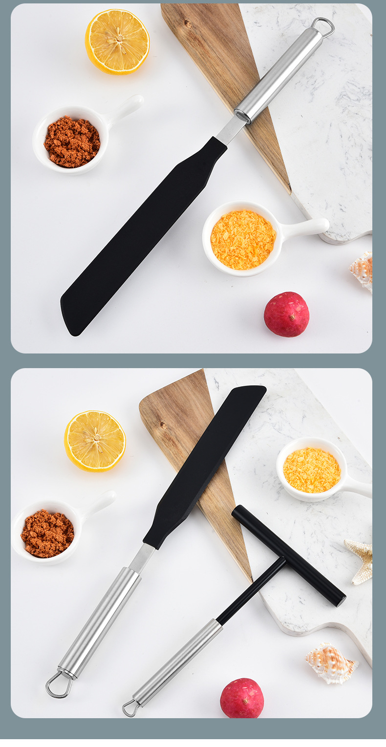 304 Acero inoxidable Pancake dispensador espátula de nylon Pancake fruta herramienta huevo pastel crema raspador