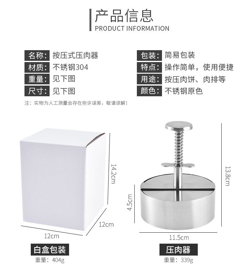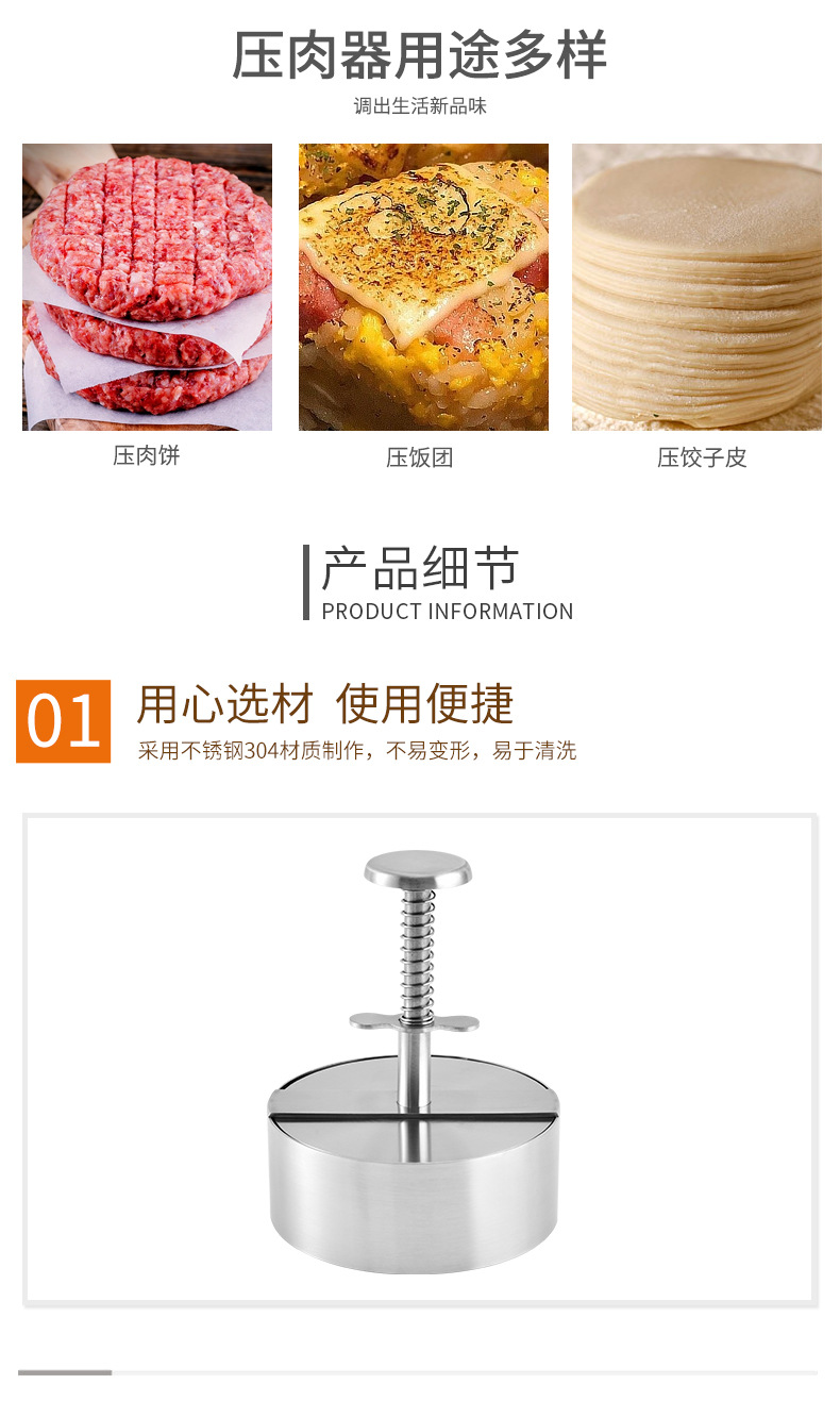304 prensa de la hamburguesa de carne de prensa de la torta de carne molde de pastel de carne manual de relleno de carne herramienta de cocina