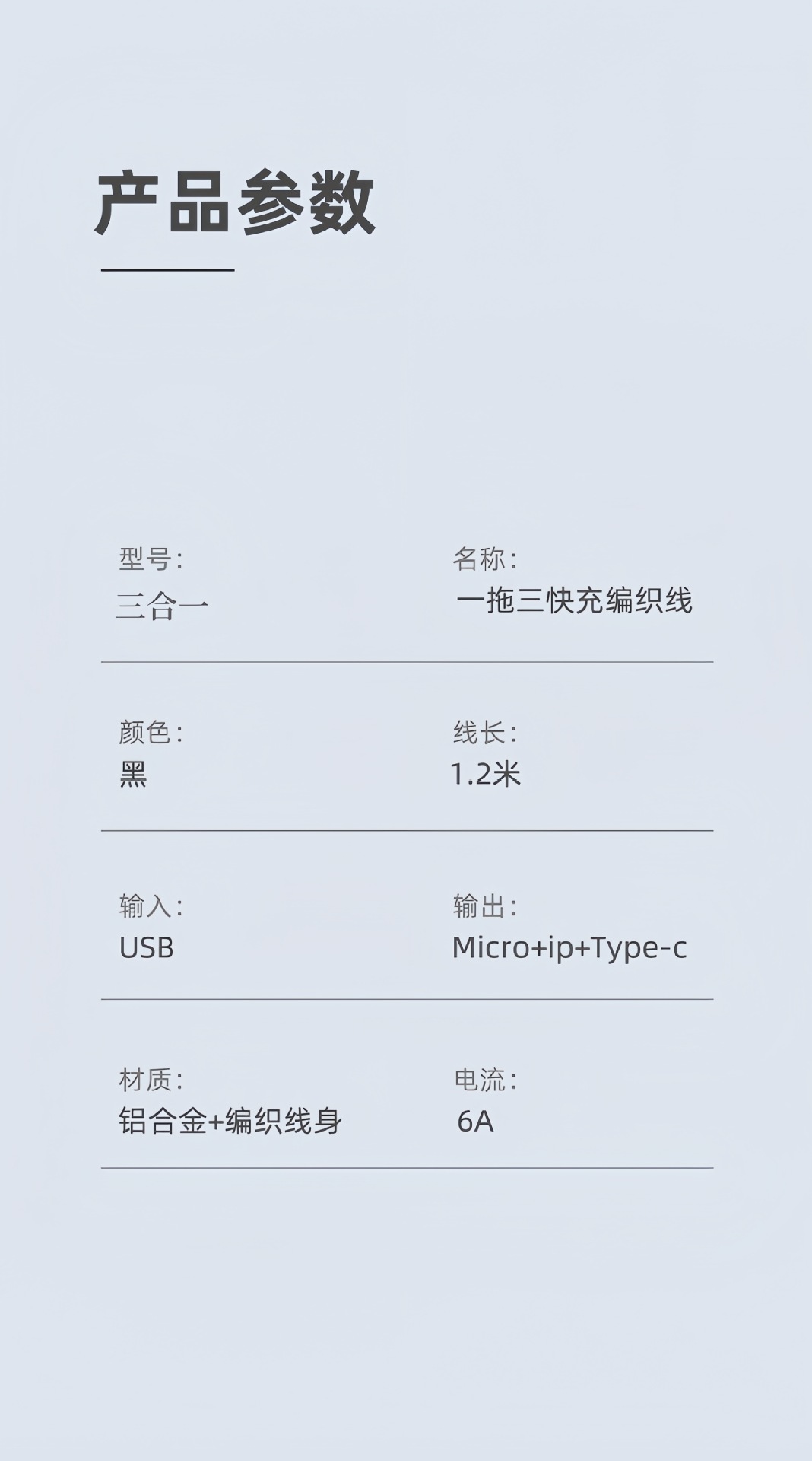 ![Cable trenzado tres en uno de 1,2 m [negro] 120W carga súper flash](https://cbu01.alicdn.com/img/ibank/O1CN01MWdvAn1UMskYBjUln_!!1854982504-0-cib.jpg)