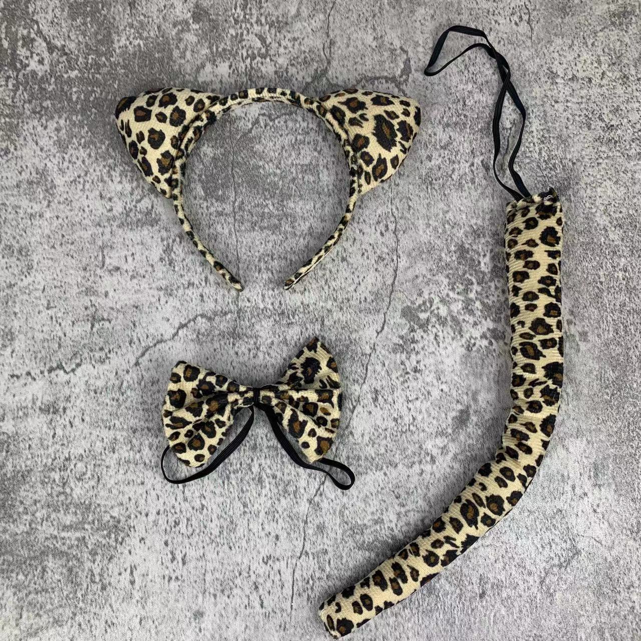 Orejas de estampado de leopardo diadema orejas de gato lindo Halloween Cosplay accesorios para adultos decoración del partido suministros