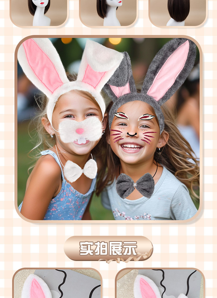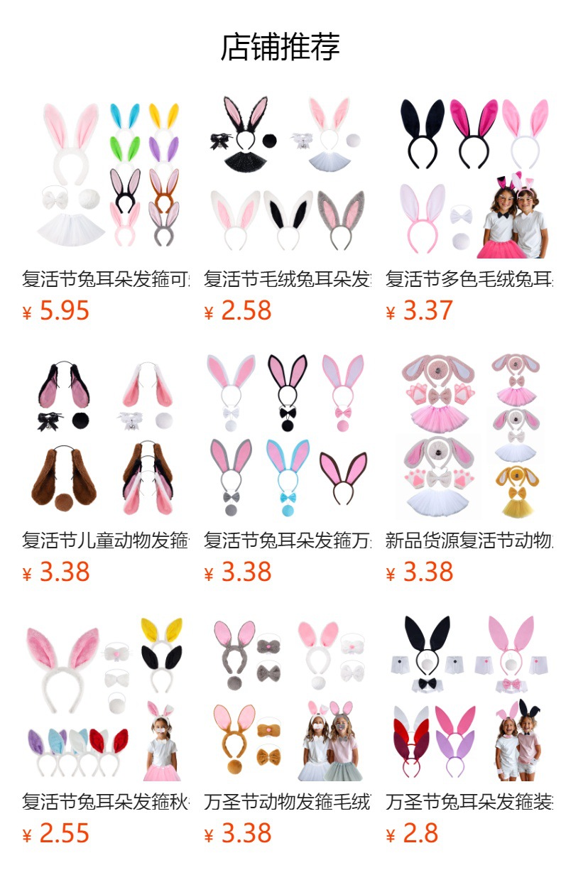 Nueva venta caliente Pascua orejas de conejo diadema traje de decoración de fiesta otoño e invierno peluche lindo diadema de conejo