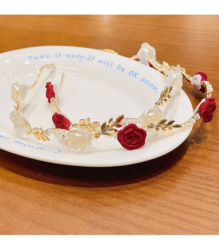 Francés retro seco Rosa flor roja perla diadema de alta calidad de las mujeres de horquilla diadema de horquilla nupcial accesorios para el cabello