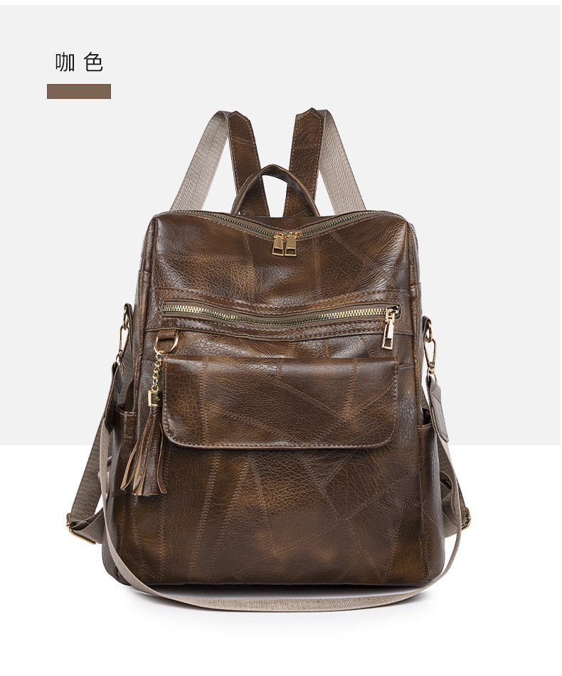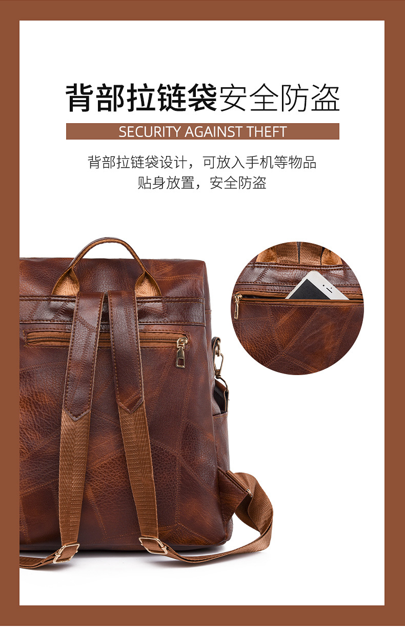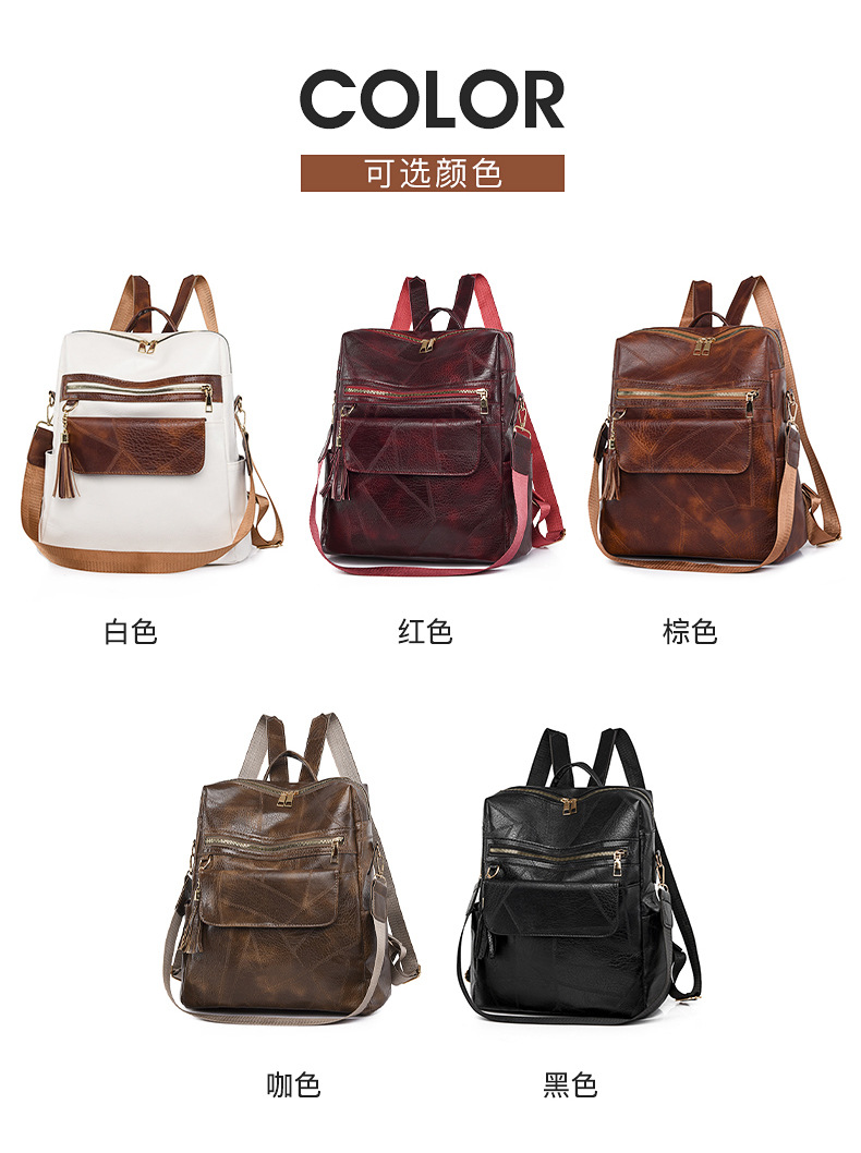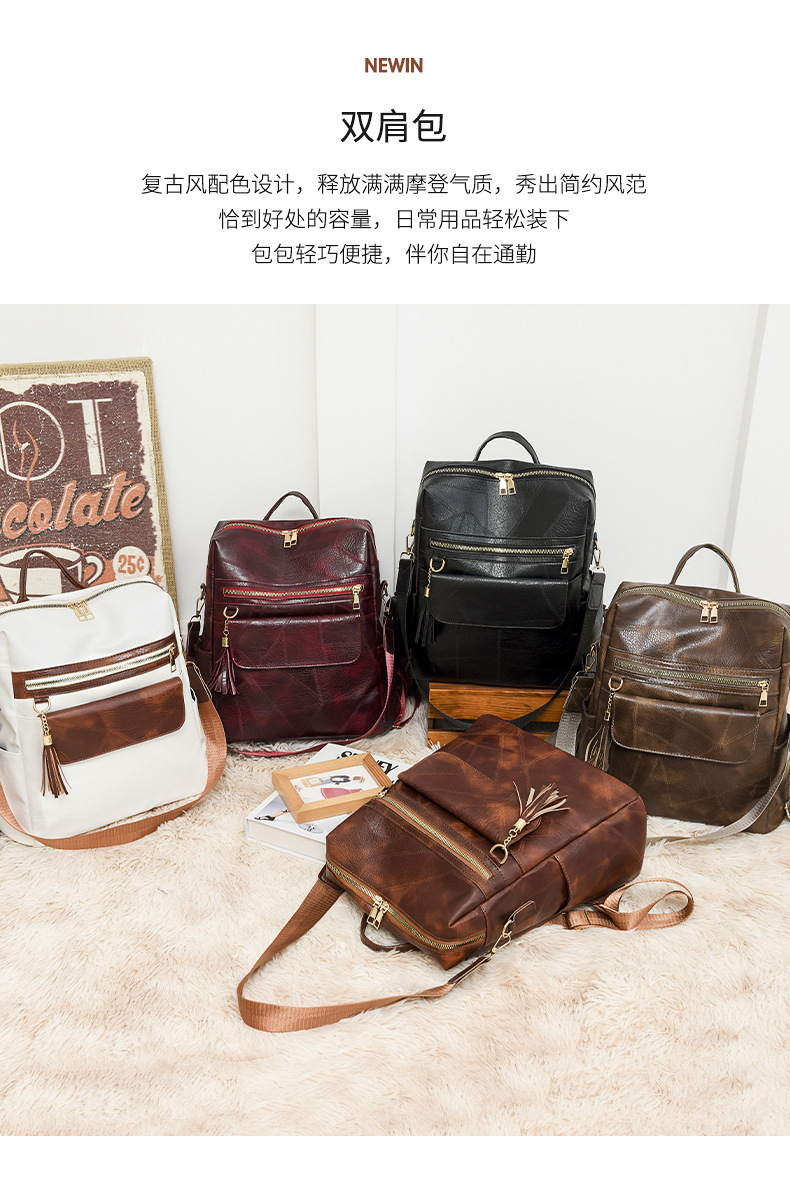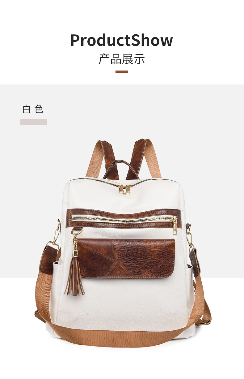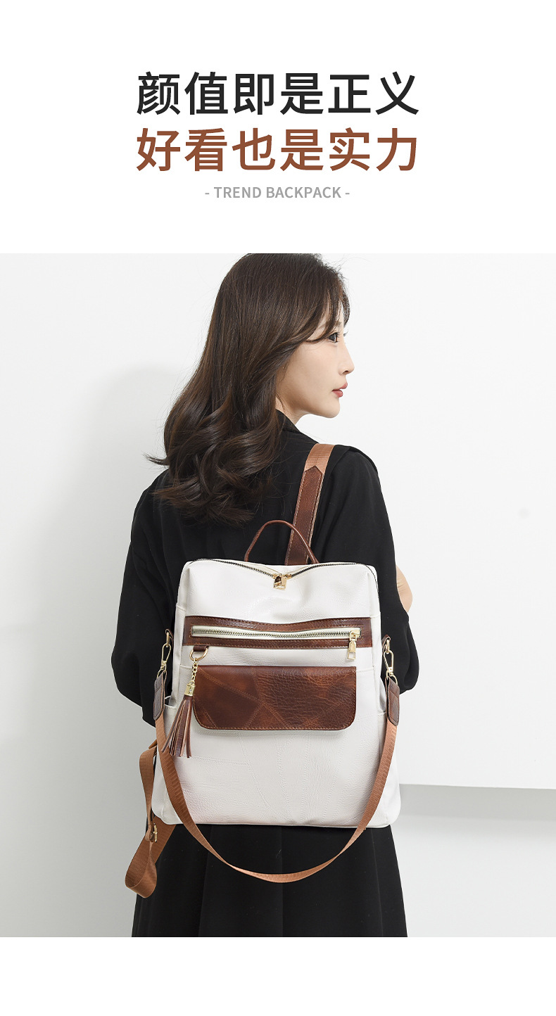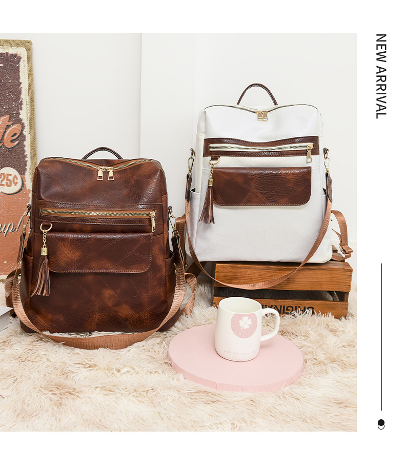 Mochila para Mujer, Nuevo Estilo 2025, Retro, Color en Contraste, Cuero Suave, Bolsa de Viaje Informal para Exteriores, Mochila Casual para Mujer