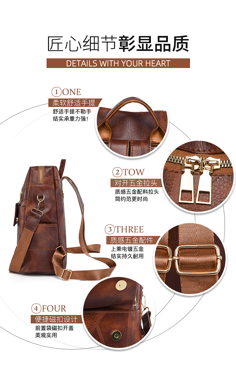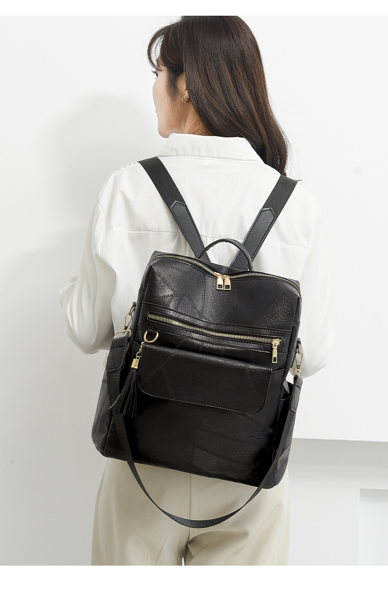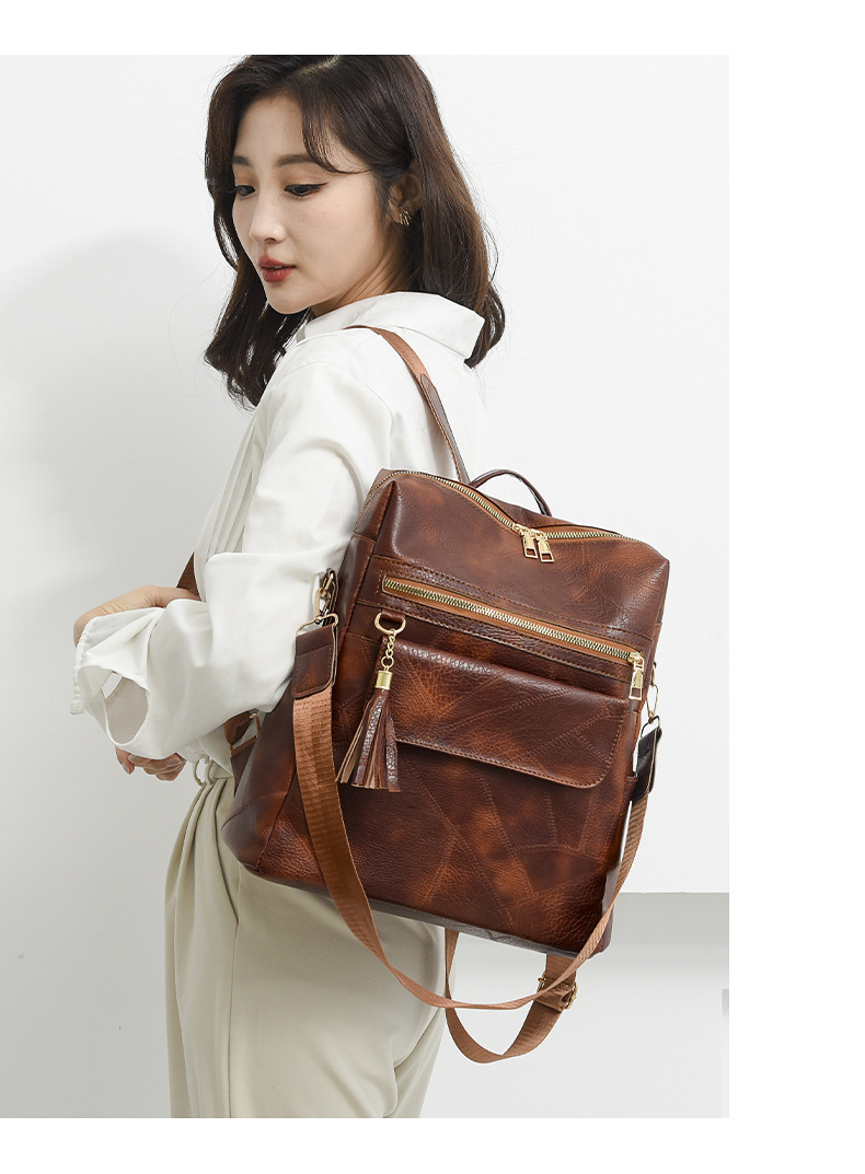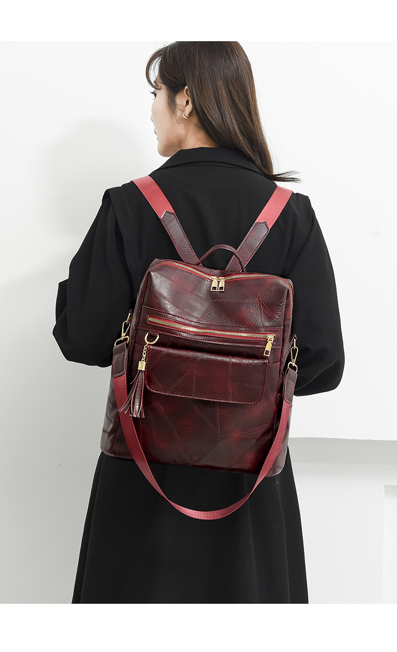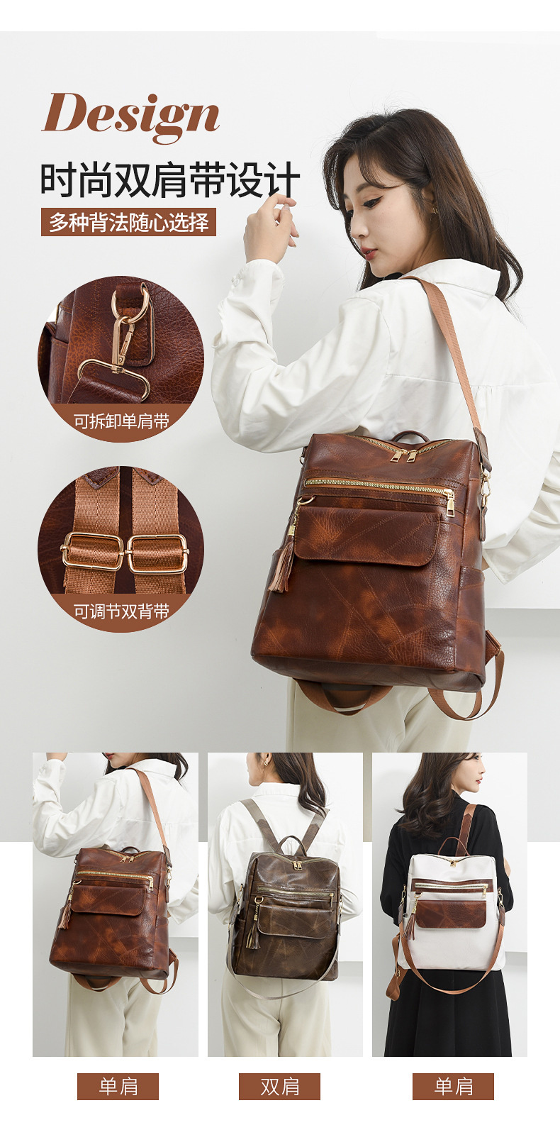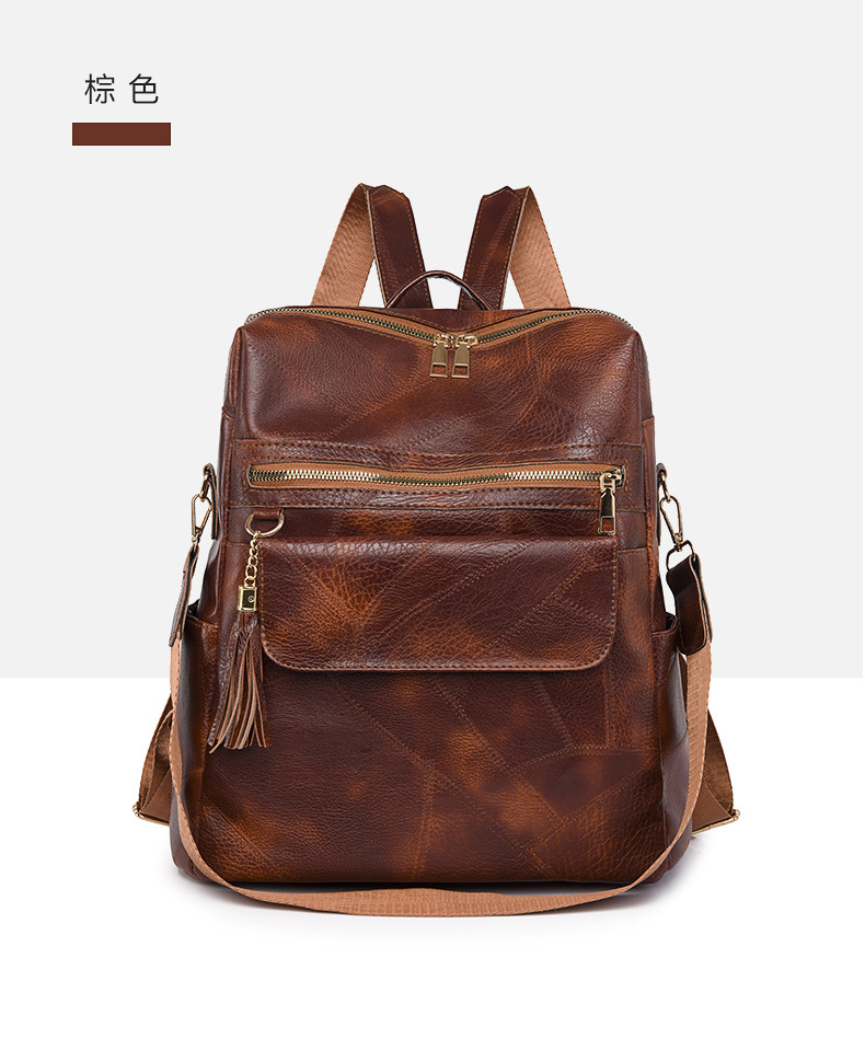 Mochila para Mujer, Nuevo Estilo 2025, Retro, Color en Contraste, Cuero Suave, Bolsa de Viaje Informal para Exteriores, Mochila Casual para Mujer