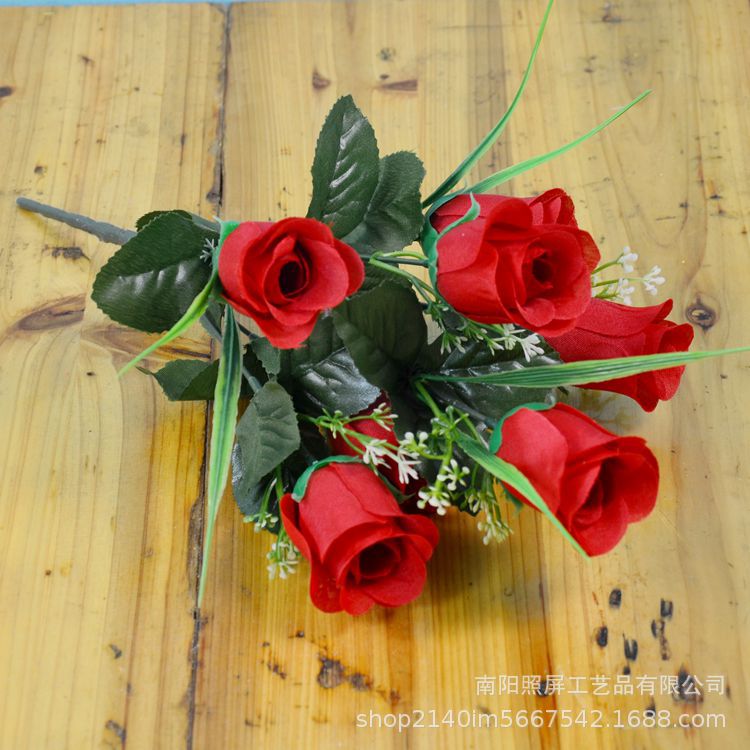 Ramo de Rosas Artificiales de Seda con Siete Cabezas, Decoración Floral Interior