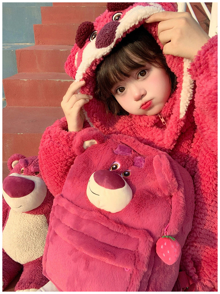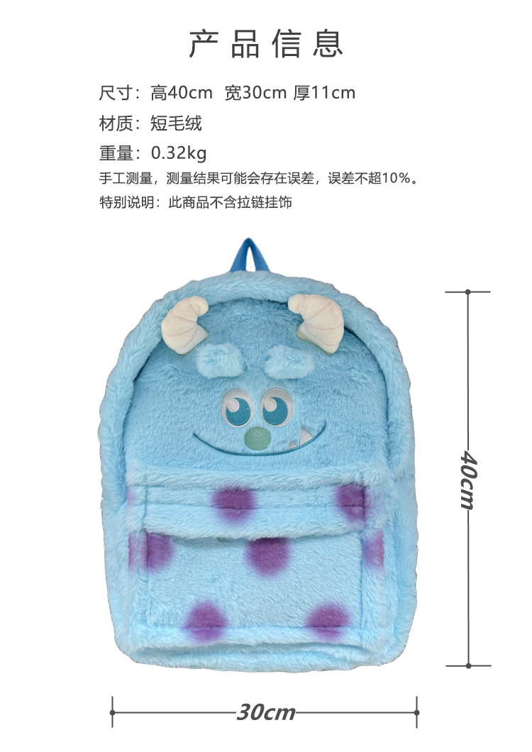Dibujos animados de felpa de gran capacidad tridimensional muñeca divertida mochila lindo estudiante de secundaria de gran capacidad campus mochila