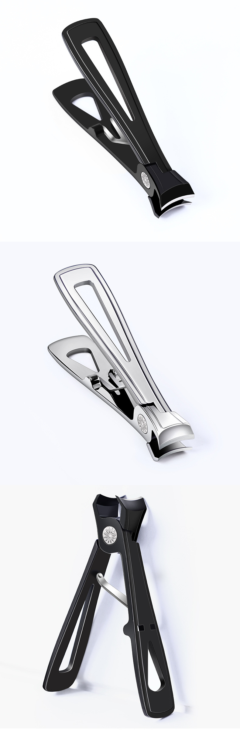 Cortaúñas de boca grande acero inoxidable negro cortaúñas de boca grande cortaúñas de gran tamaño cortaúñas de un solo paquete cortaúñas de boca grande en lotes de stock