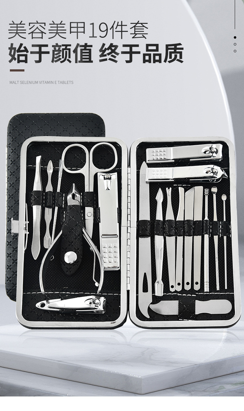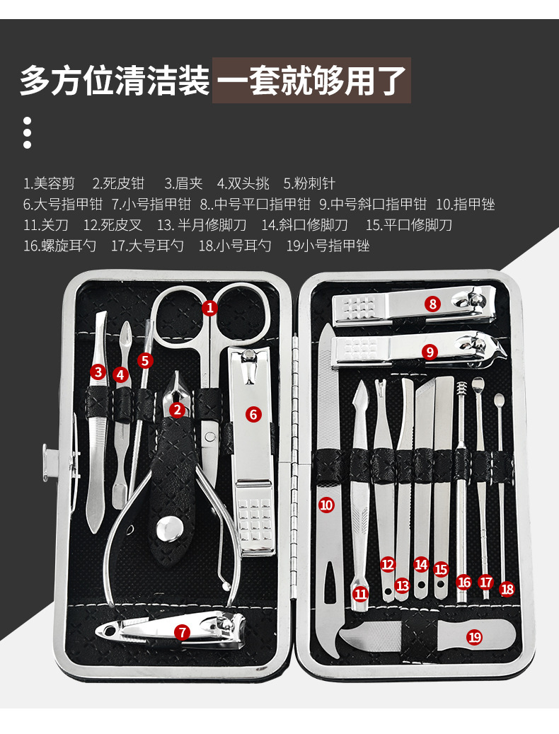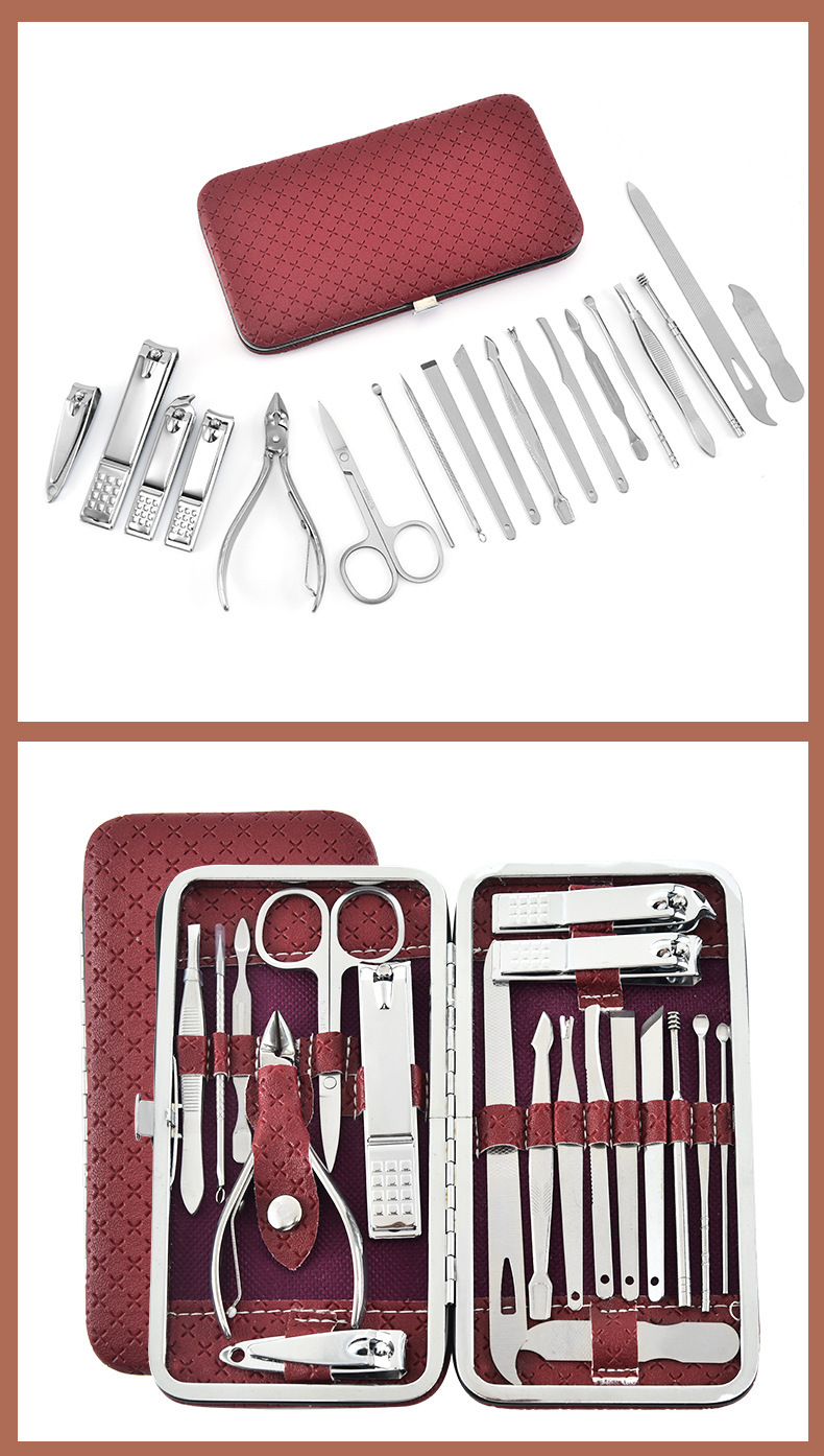 Set de Manicura y Pedicura de Acero Inoxidable, Kit de Belleza de 19 Piezas