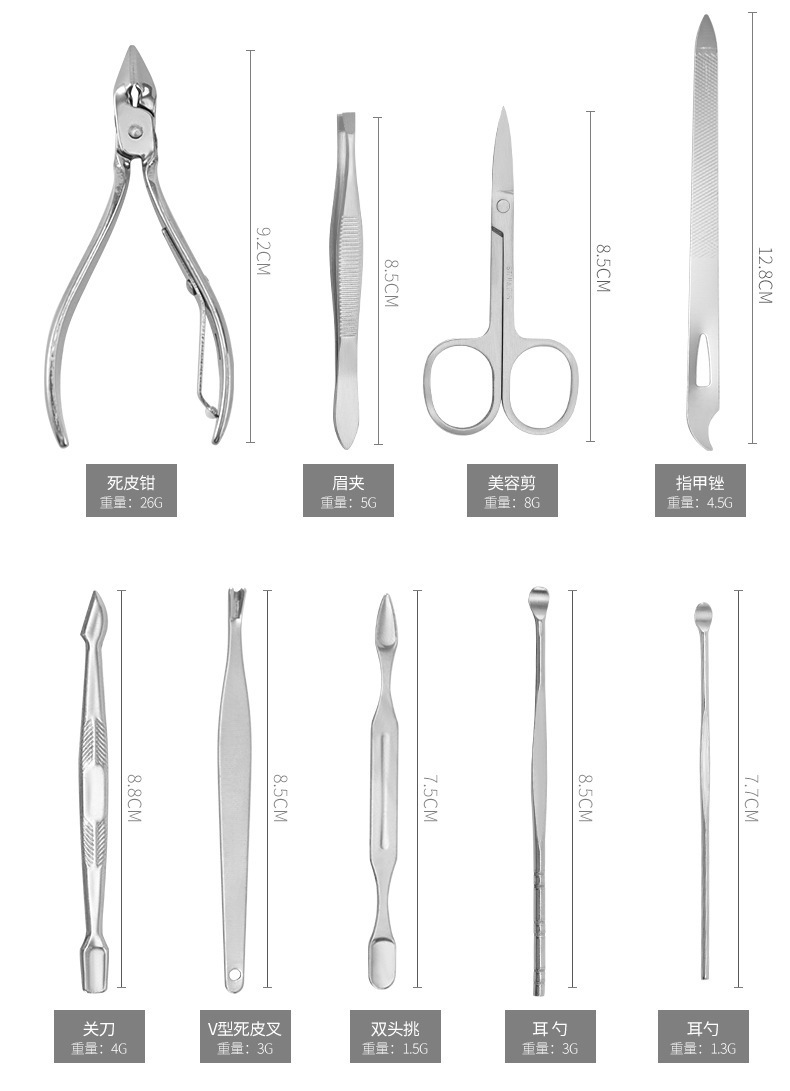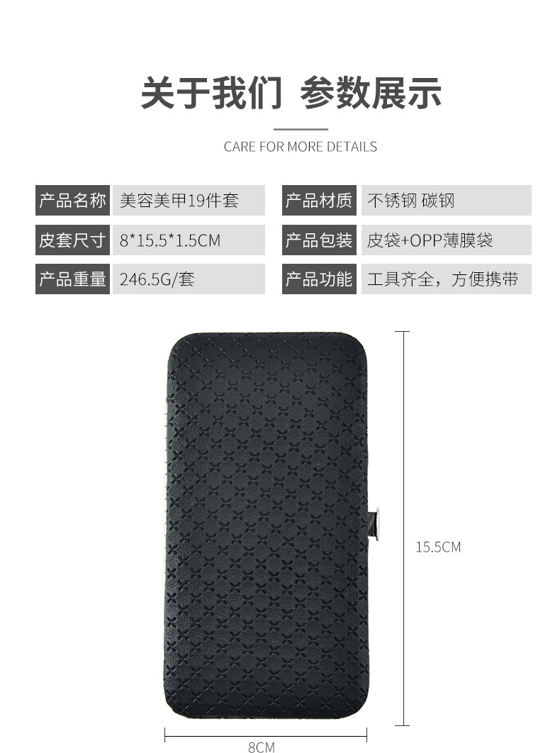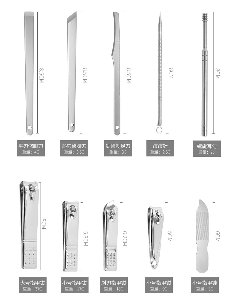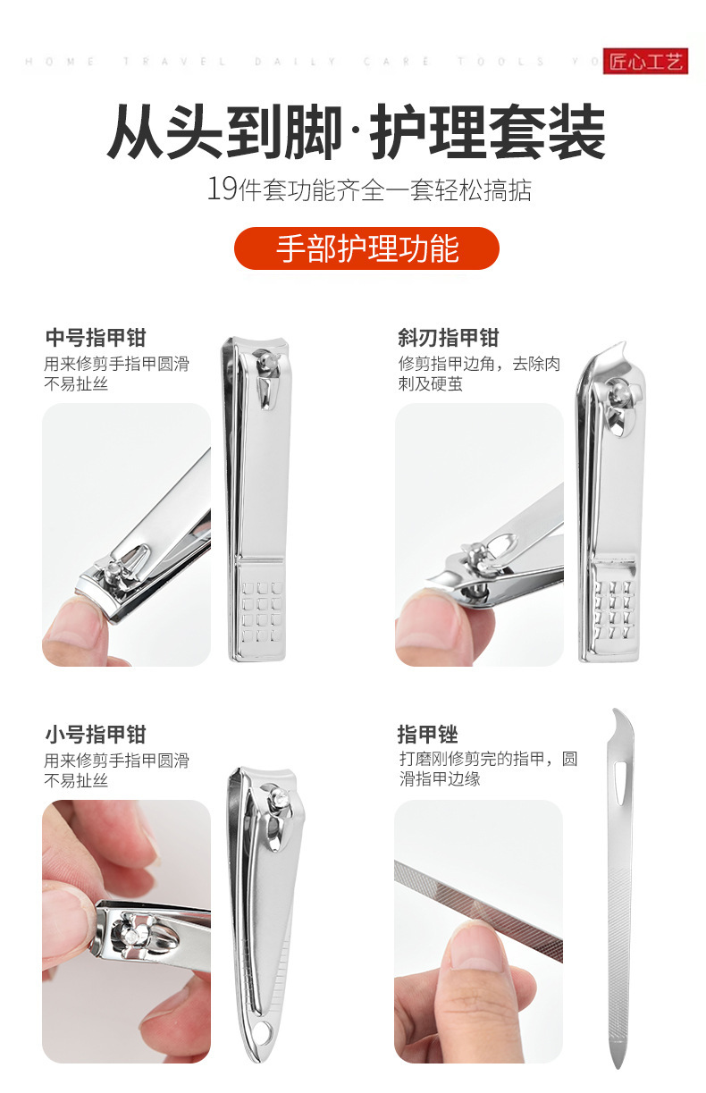 Set de Manicura y Pedicura de Acero Inoxidable, Kit de Belleza de 19 Piezas