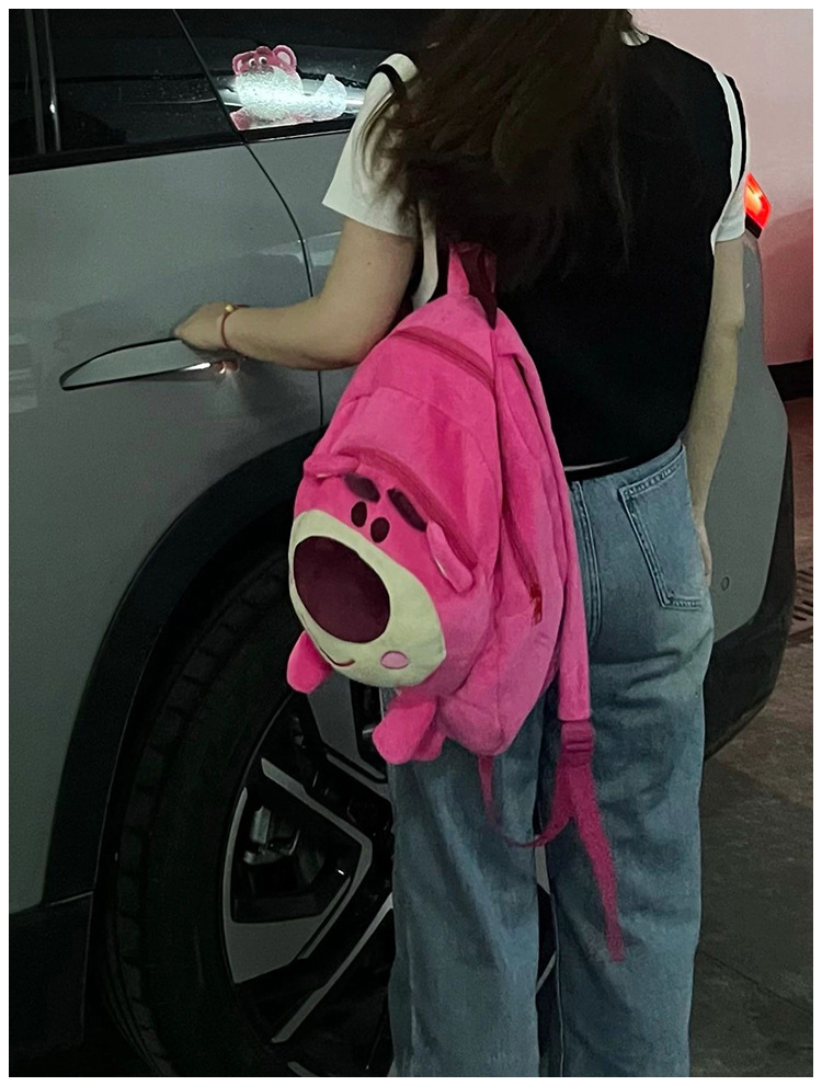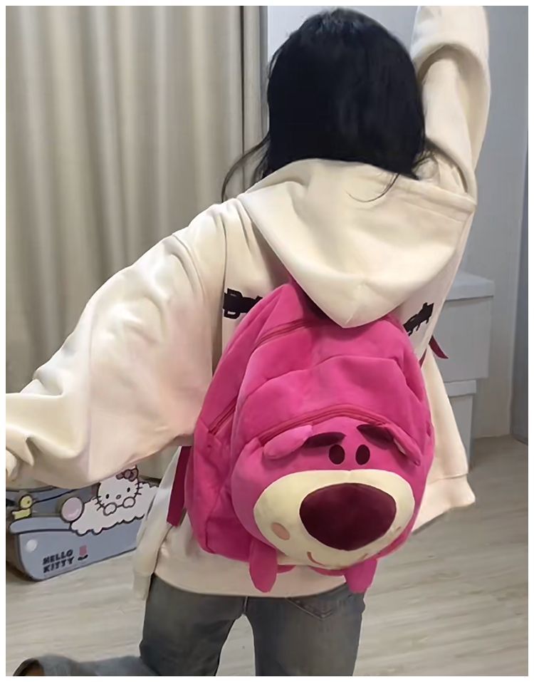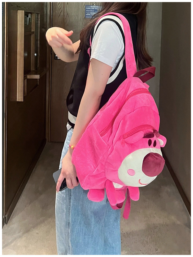 Rosa oso estilo coreano mochila lindo mochila felpa dibujos animados niña corazón japonés campus mochila estudiante de secundaria bolsa