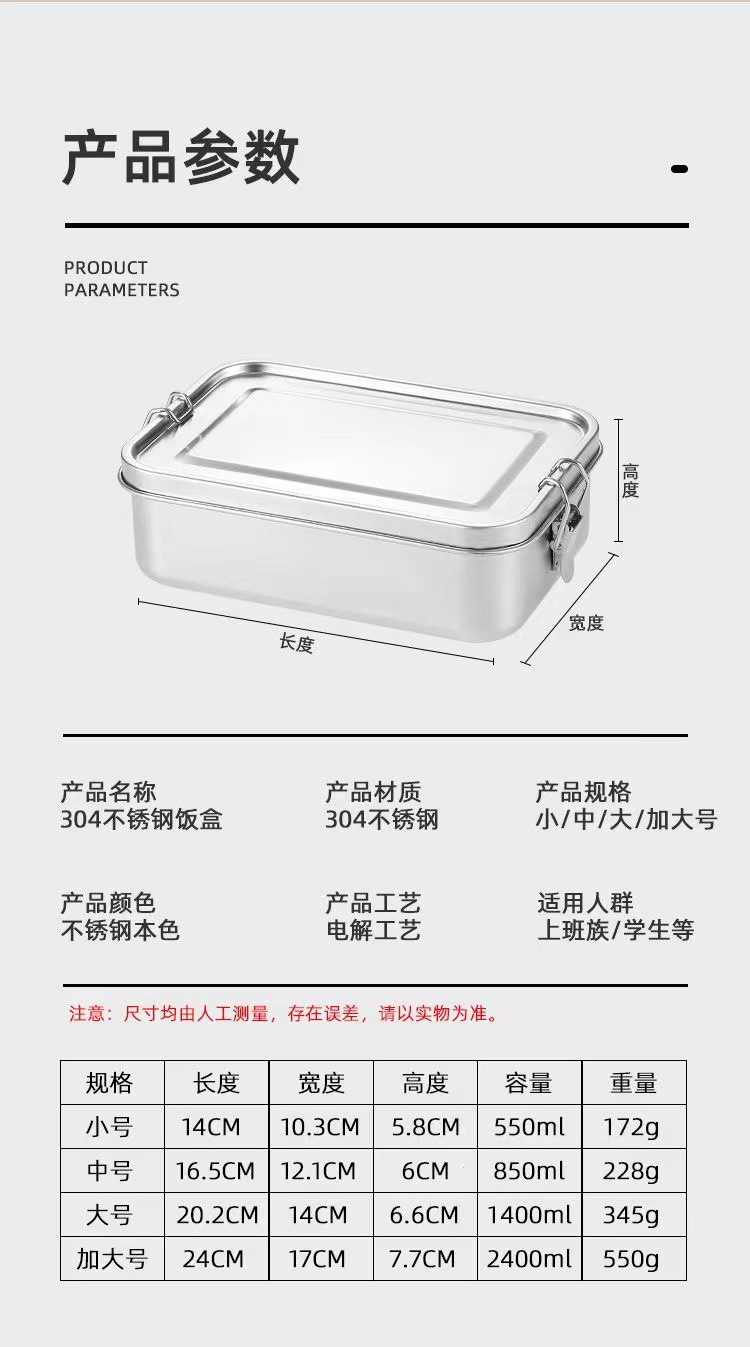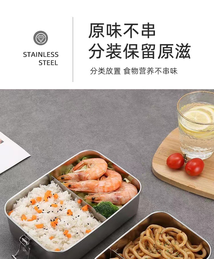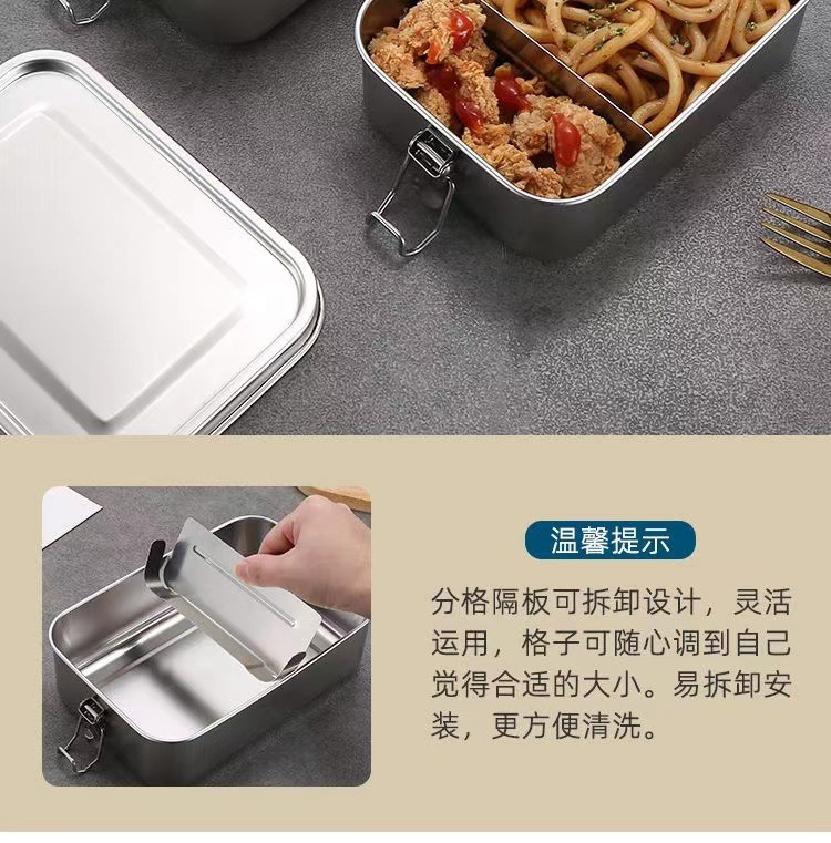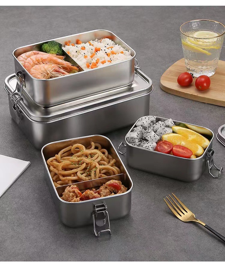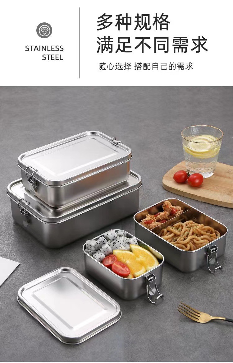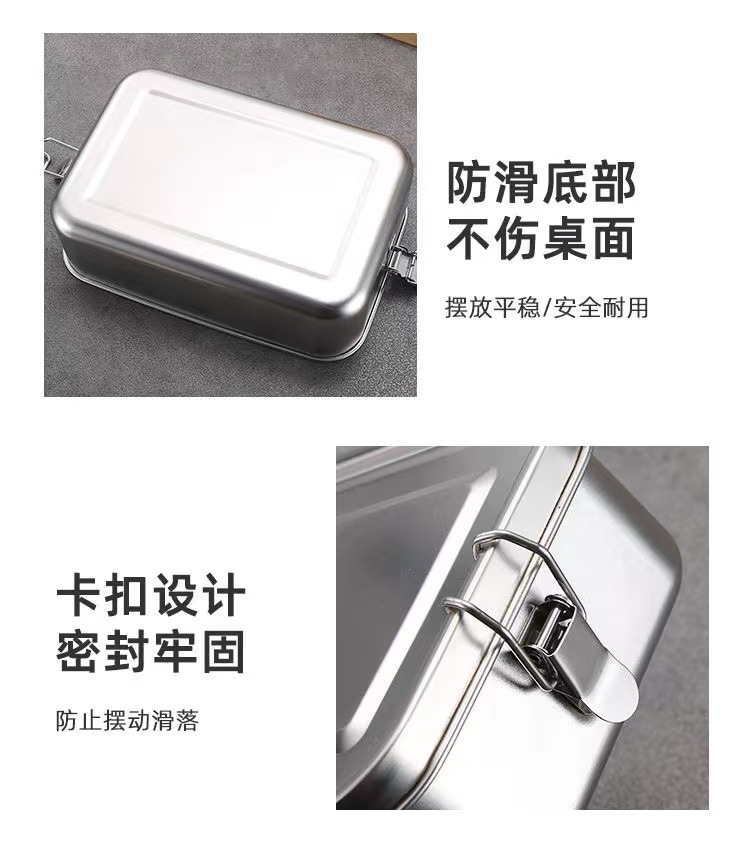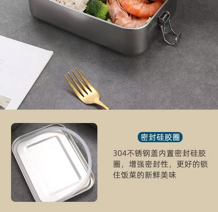 Fiambrera de acero inoxidable 304 al por mayor transfronteriza, caja de almuerzo de horno microondas, caja de almuerzo con hebilla, caja de almuerzo al aire libre de cantina