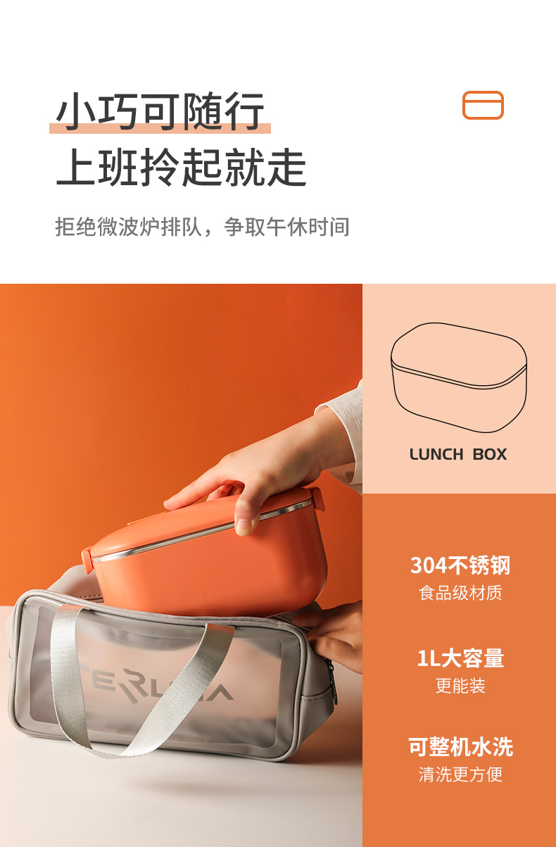 Caja de almuerzo de calefacción de acero inoxidable 304 enchufable eléctrico sin inyección de agua engrosada portátil calefacción eléctrica aislada caja de almuerzo caja de Bento Coche