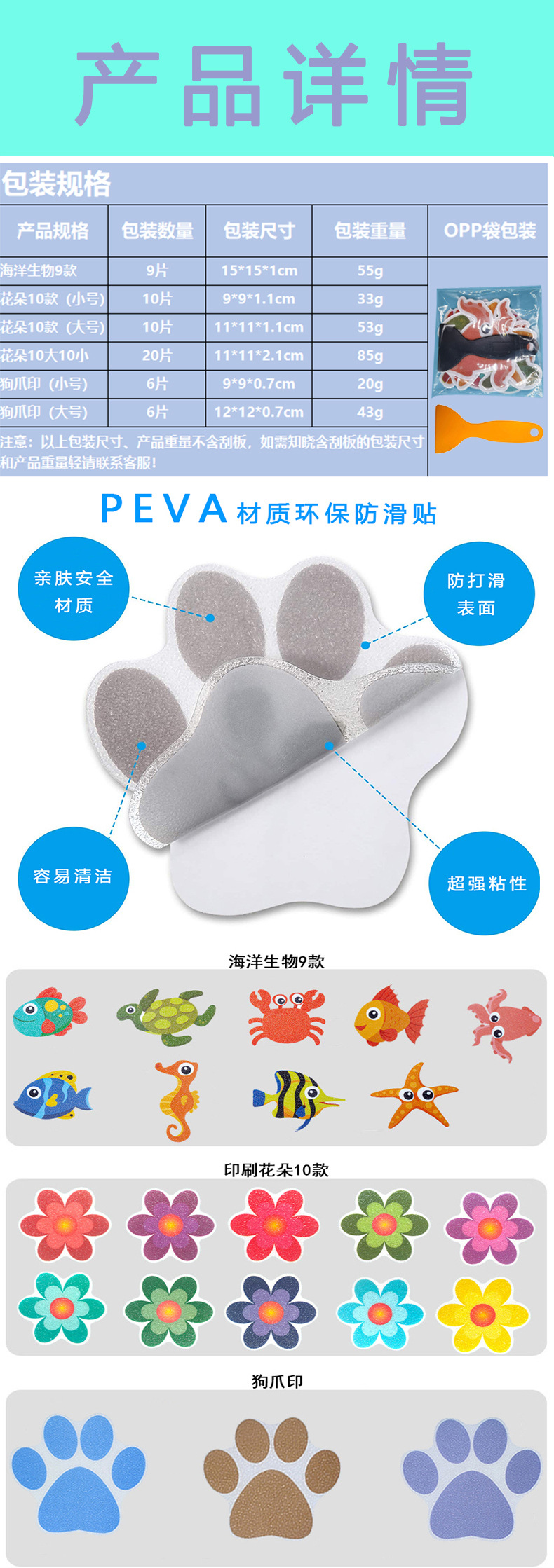 Transfronterizo en stock baño bañera carta de dibujos animados perro garra flor color impermeable antideslizante pegatinas PEVA