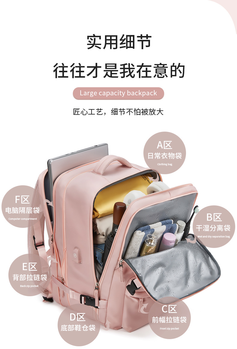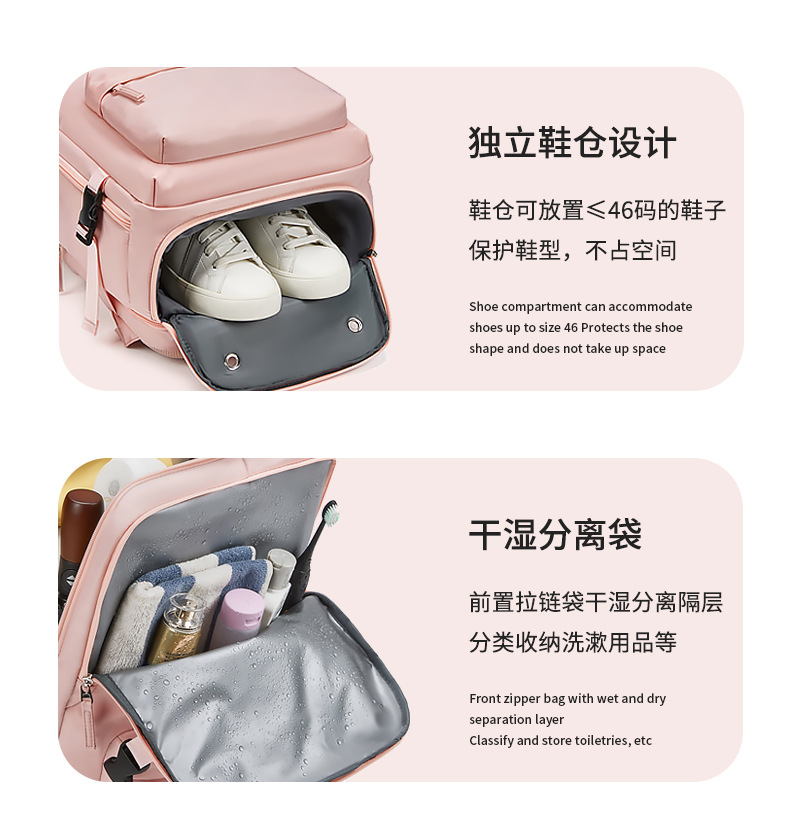 Mochila de viaje para mujer bolsa de equipaje ligera de corta distancia mochila de separación húmeda y seca mochila de estudiante de moda casual de gran capacidad
