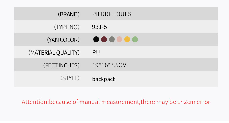 | Color | Rosa,Negro,Amarillo,Gris,Vino Rojo,Azul,Verde |