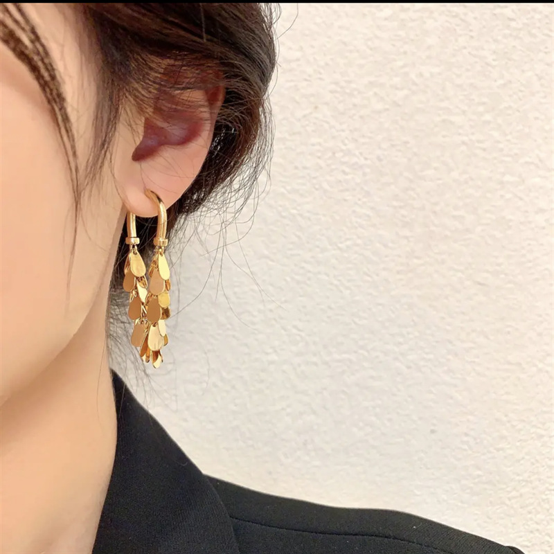 Nicho diseño de la industria pesada borla pendientes de lentejuelas Alto sentido delantero y trasero desgaste de Internet pendientes de la celebridad elegante luz de lujo del todo-fósforo pendientes