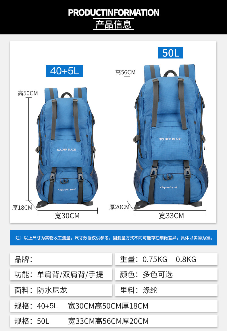 Ventas directas de la fábrica Comercio exterior solo mochila de deportes al aire libre 50 impermeable bolso del alpinismo hombres mochila de gran capacidad senderismo