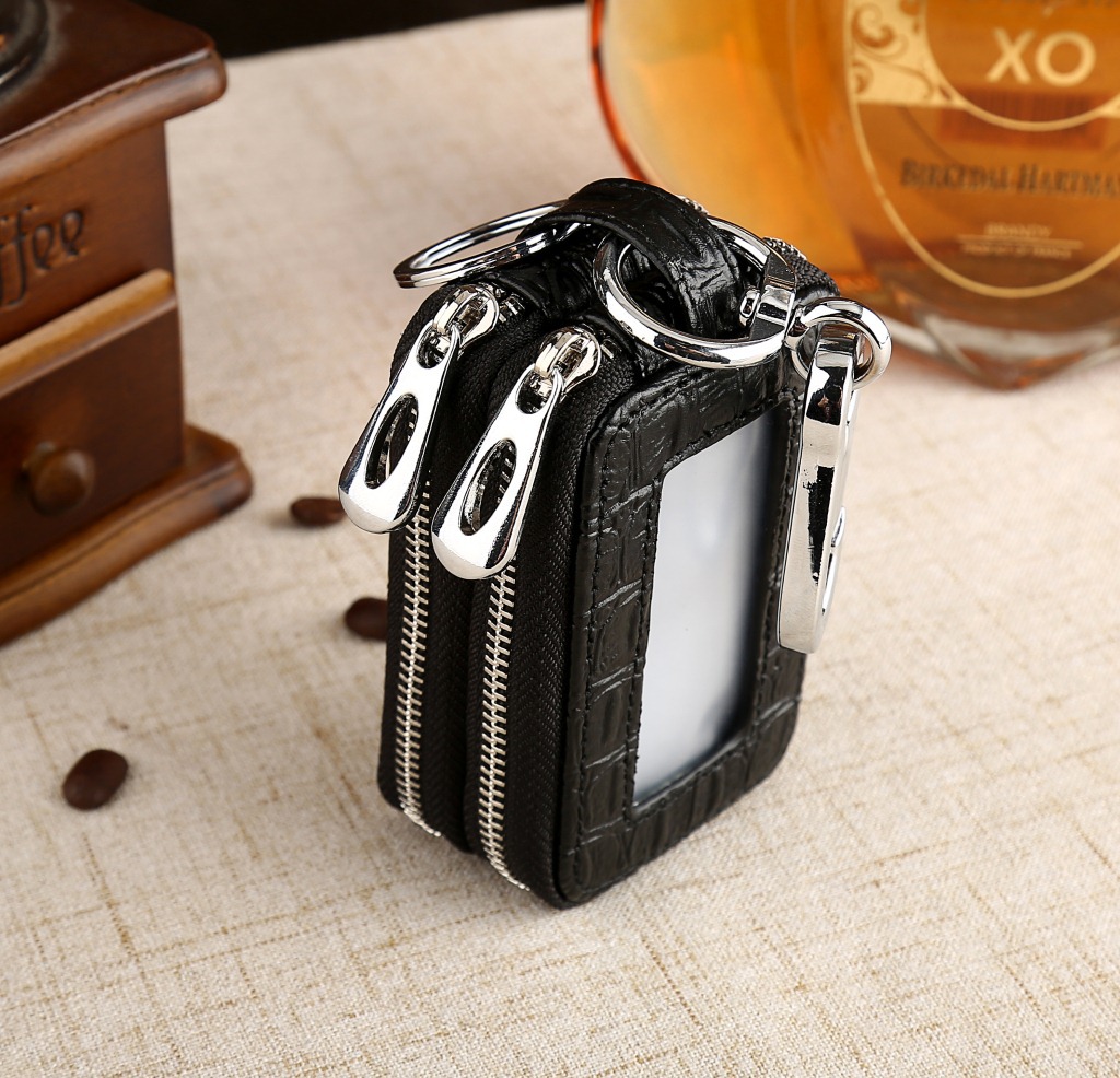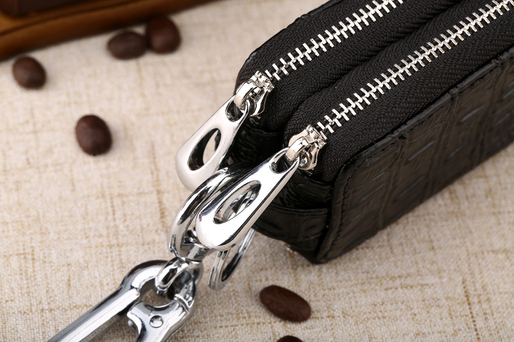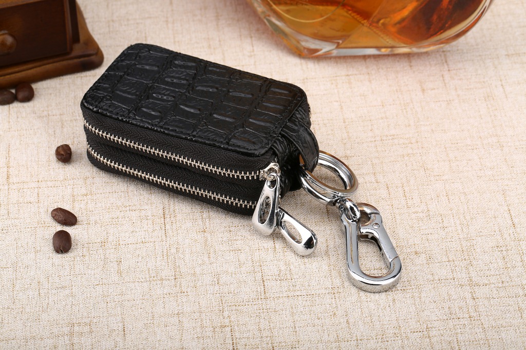 Caso clave patrón de cocodrilo cuero de las mujeres caja de la llave del coche de gran capacidad primera capa de piel de vaca de doble capa antirrobo puerta clave caso