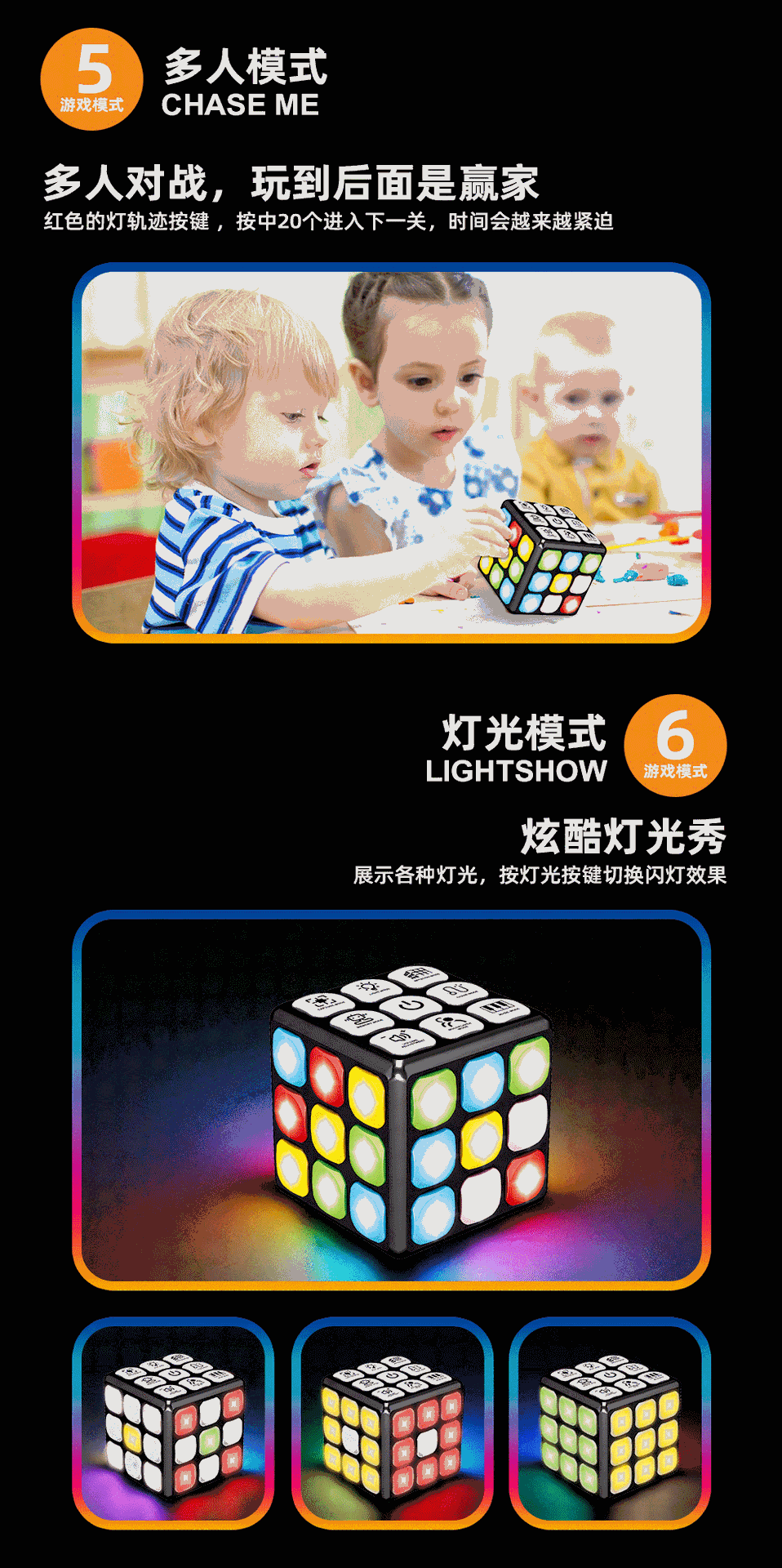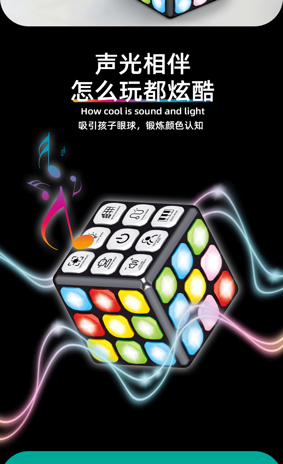 Música ligera infantil transfronteriza Cubo de Rubik Juego multifuncional Cubo de Rubik Sonido y luz Rompecabezas eléctrico Juguetes interactivos