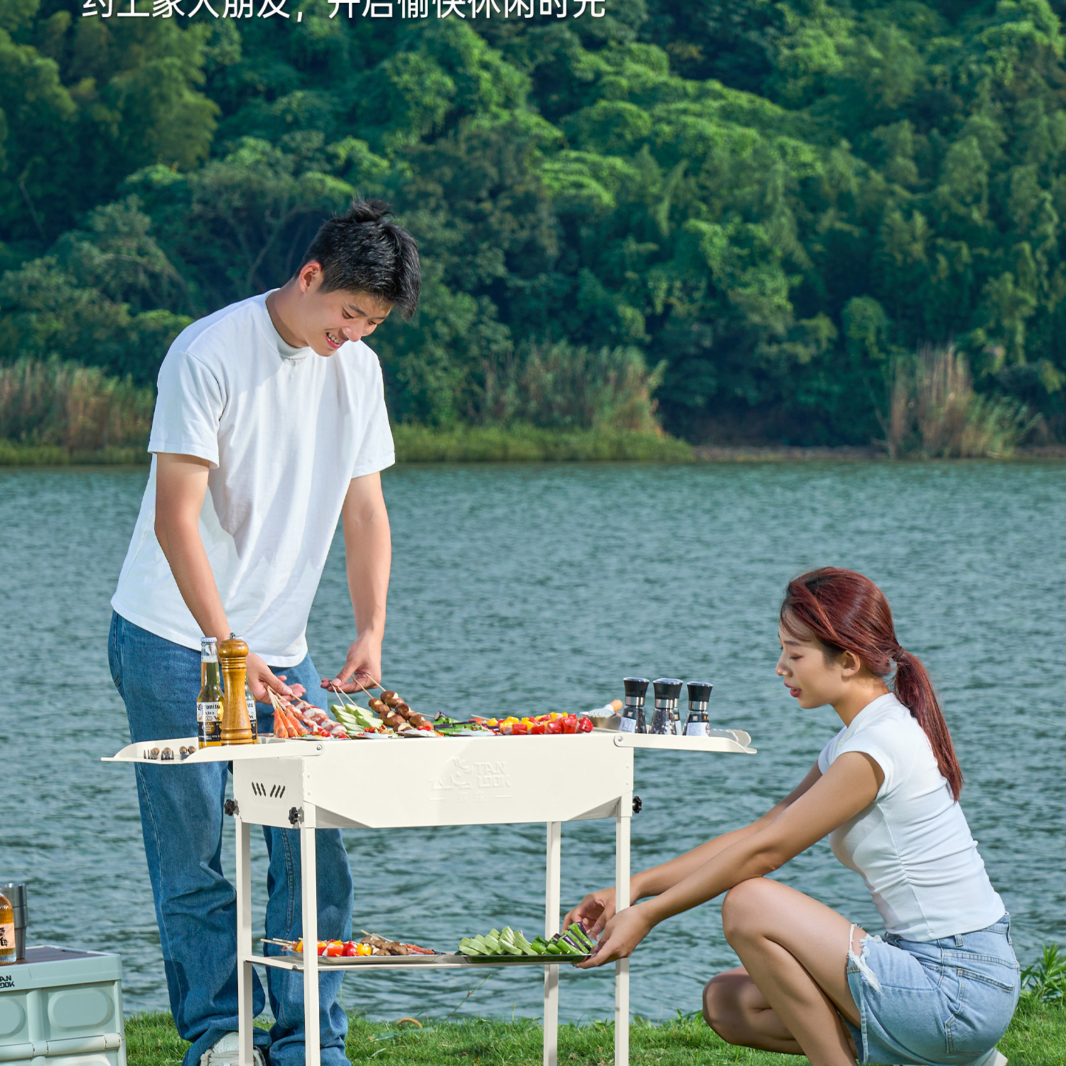 Acampar al aire libre plegable barbacoa parrilla freír y hornear horno de carbón de doble propósito multifunción barbacoa parrilla