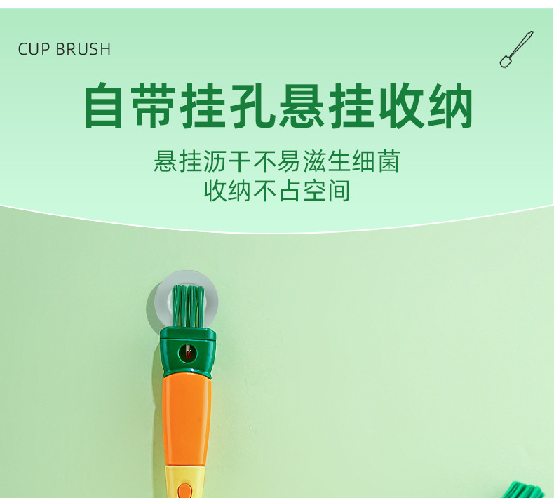 Mango largo para el hogar actualización multifuncional Cepillo de copa cepillo de limpieza Zanahoria creativa Cuatro en Uno cepillo de copa cepillo de botella cepillo de limpieza