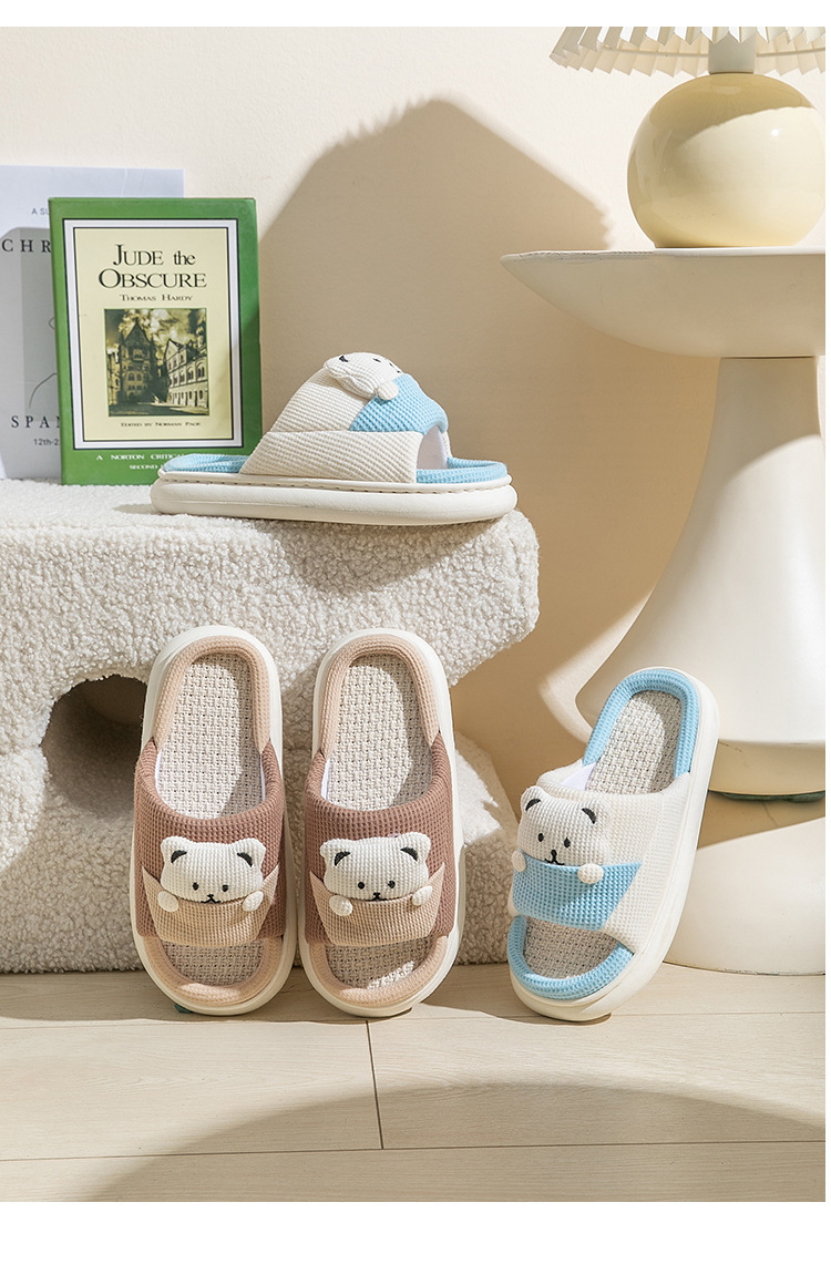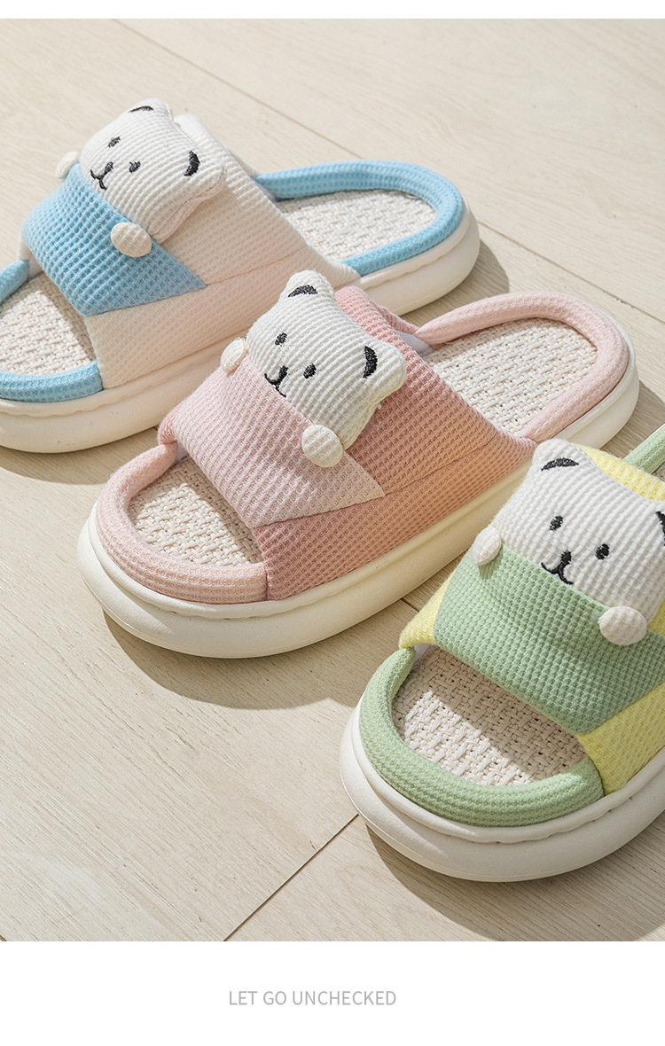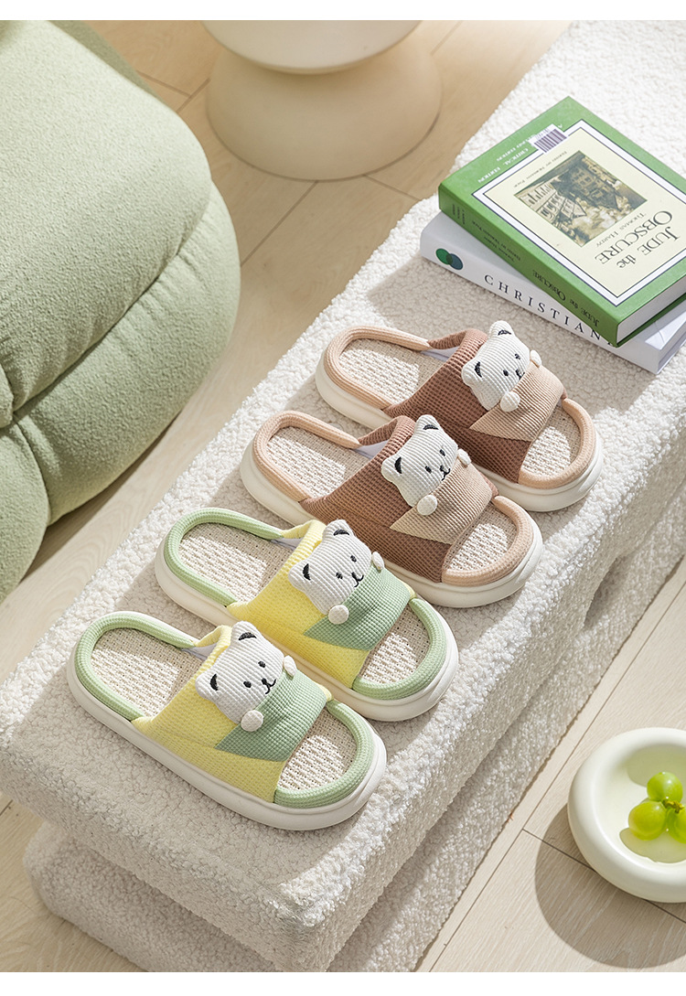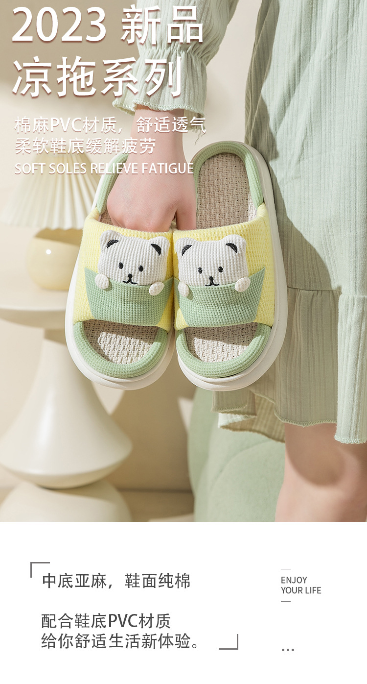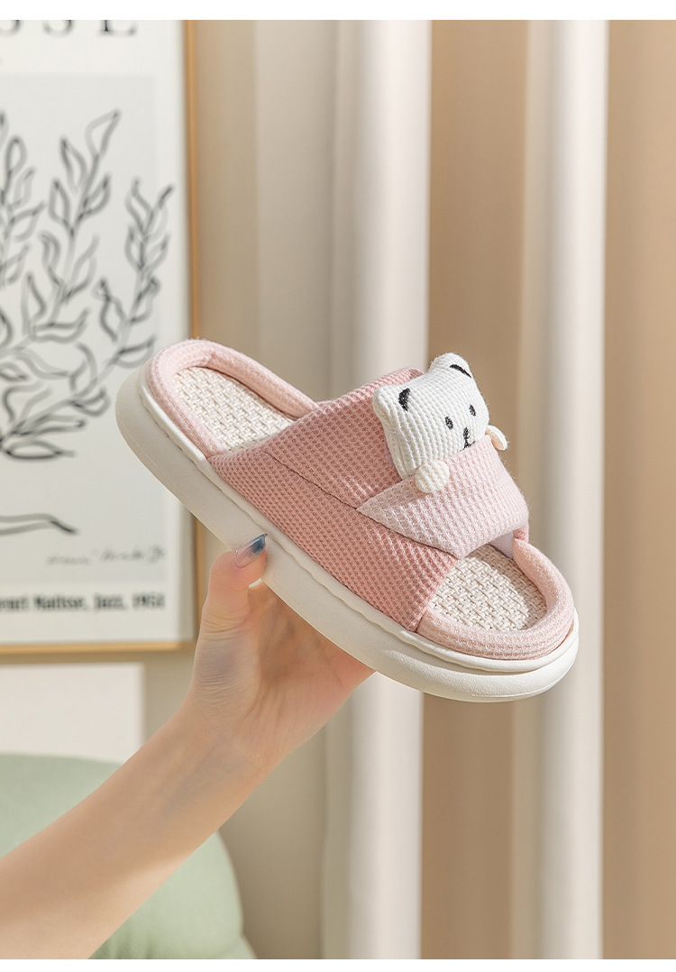 Nuevo hogar mudo drooping dibujos animados zapatillas de algodón práctico zapatillas de lino de primavera de las mujeres de fondo grueso de moda al por mayor