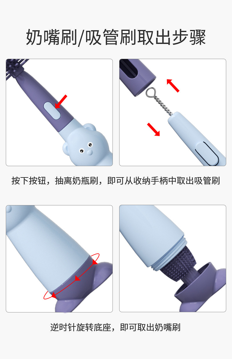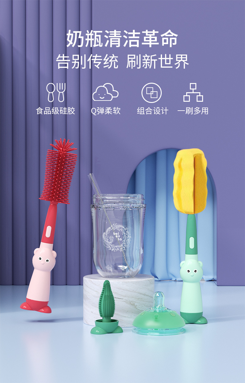 Fabricante de cepillo de biberón de silicona cepillo de limpieza taza de agua cepillo de pezón conveniente cepillo de limpieza de biberón especial para bebés