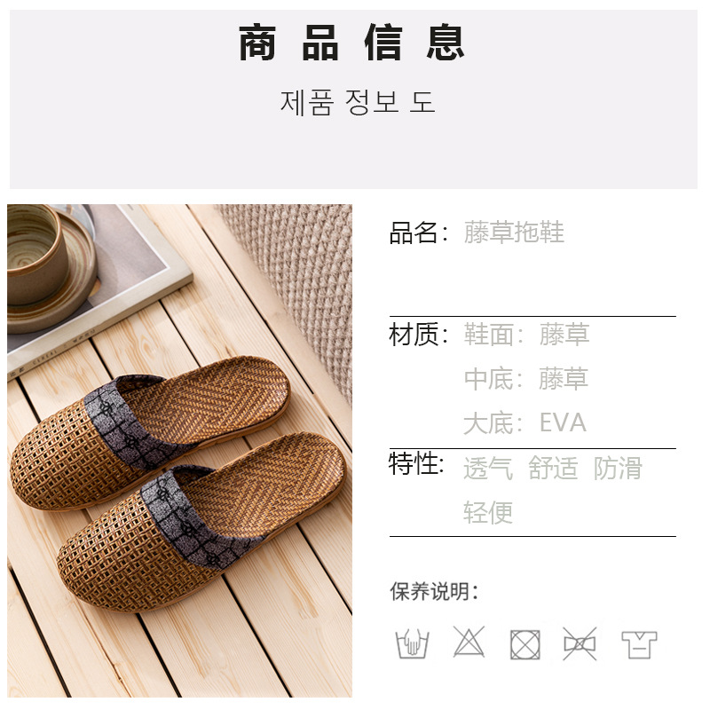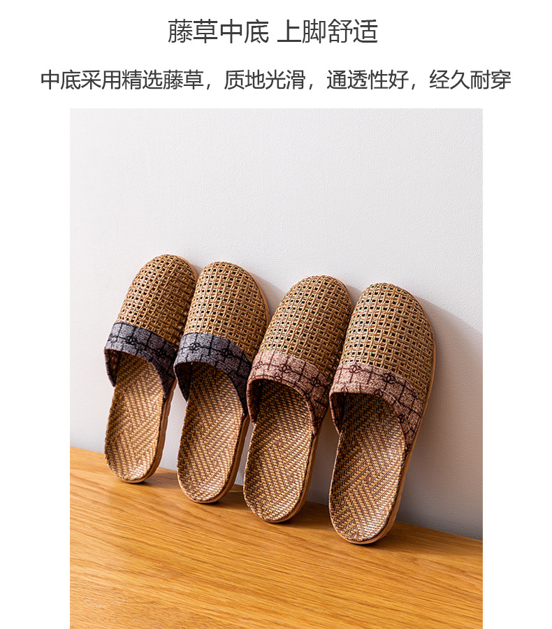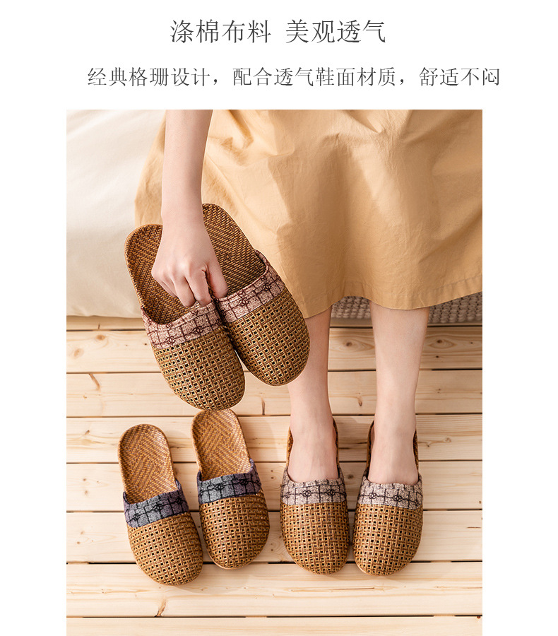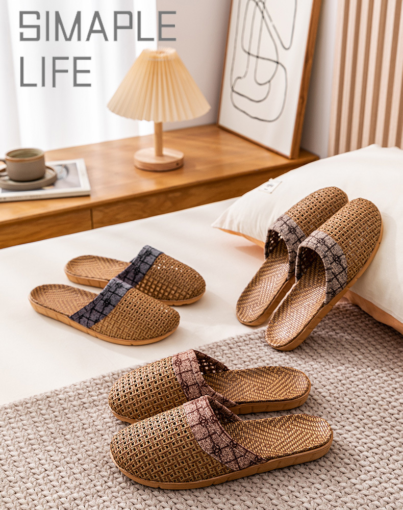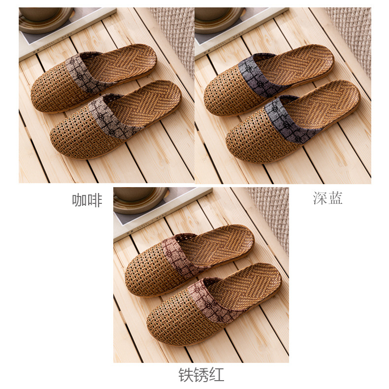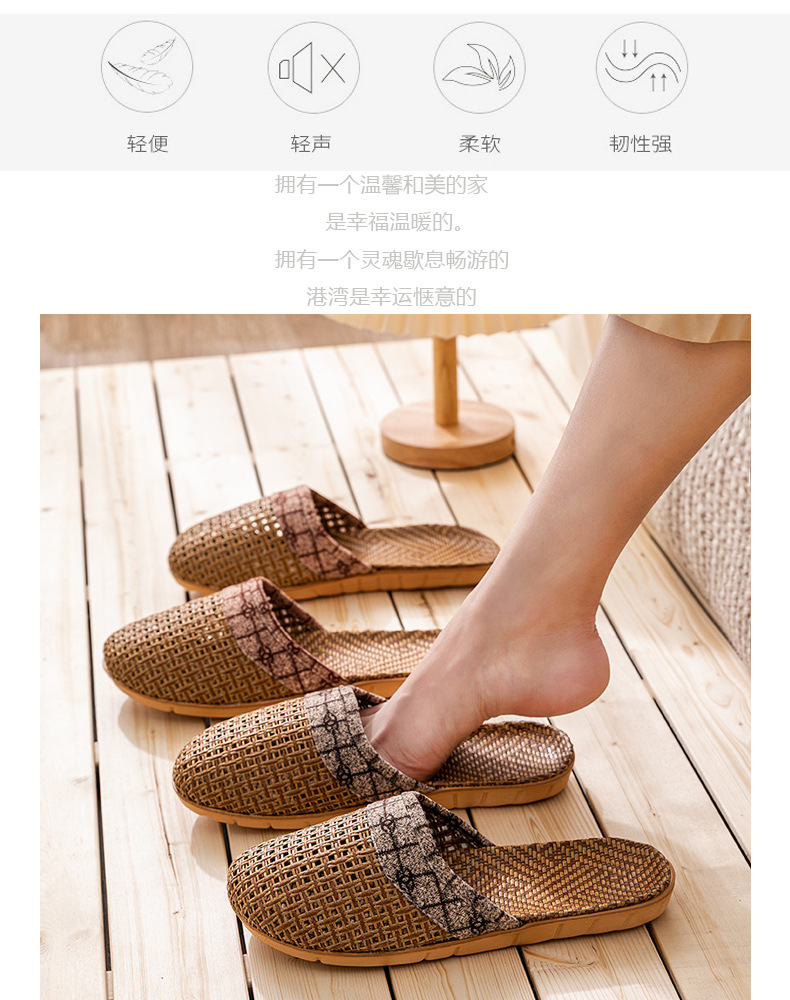 Zapatillas tejidas de paja de verano zapatillas de lino de mujer casa interior ligero piso inferior grueso ratán hogar de los hombres
