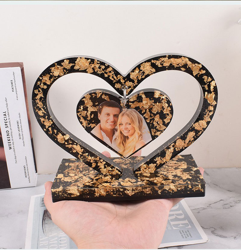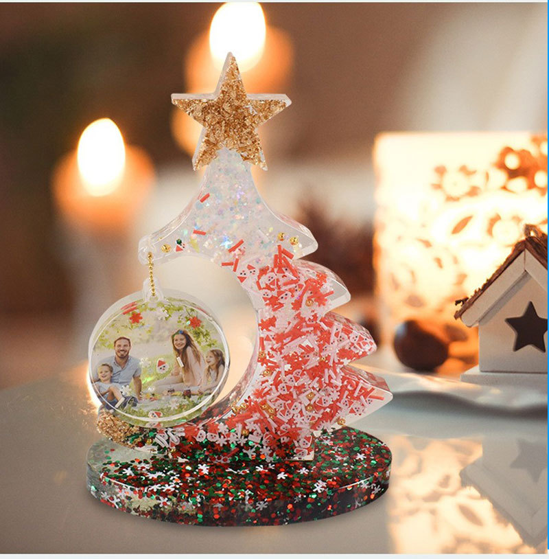 Resina epoxi diy cristal epoxi tridimensional amor marco de fotos árbol de navidad decoración colgante molde de silicona