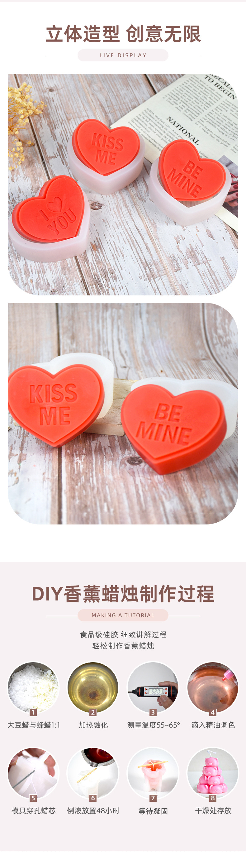 Qiukai carta de amor transfronterizo jabón hecho a mano molde de silicona DIY amor aromaterapia vela molde de la torta