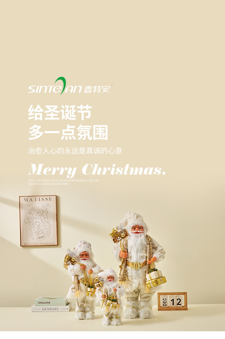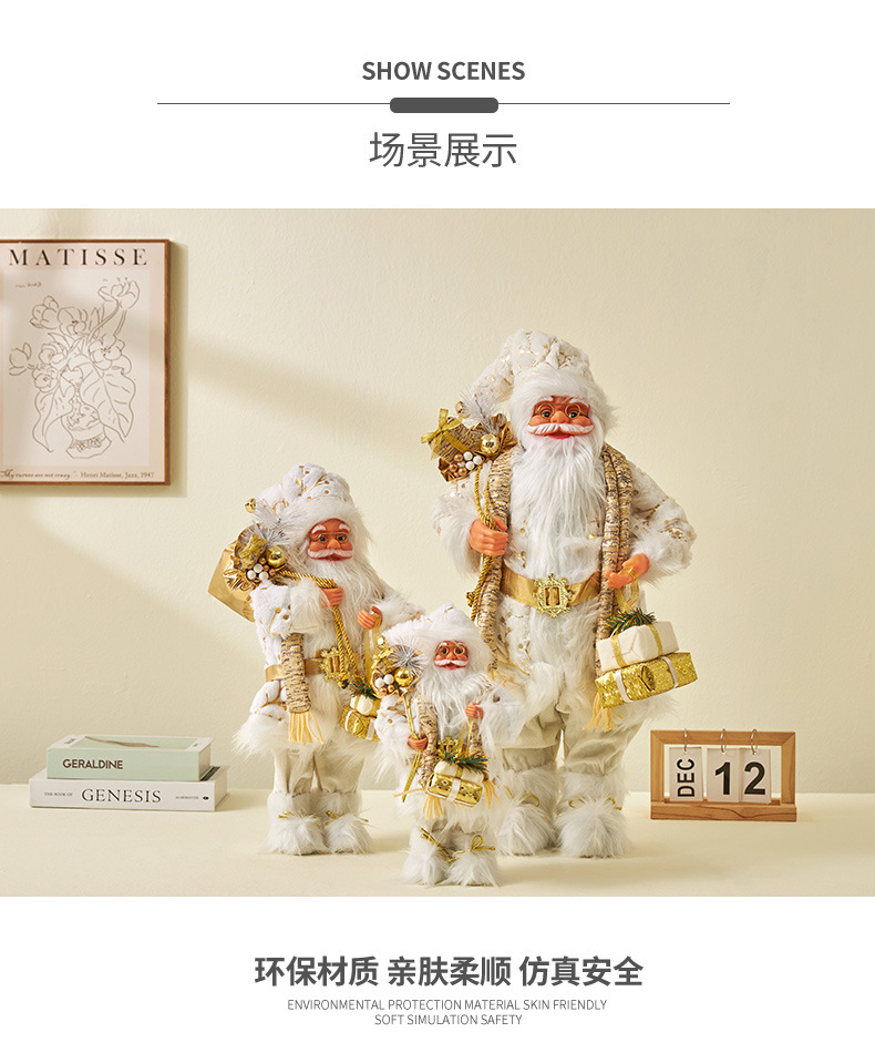 Golden Santa Claus decoración 30/45/60cm Navidad muñeca ventana decoración del hogar creativo nuevo transfronterizo