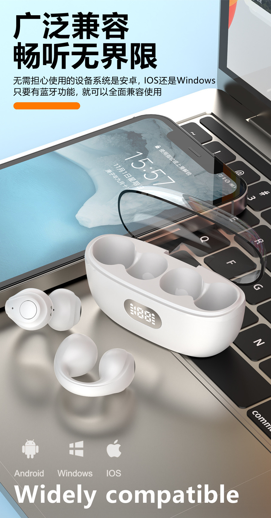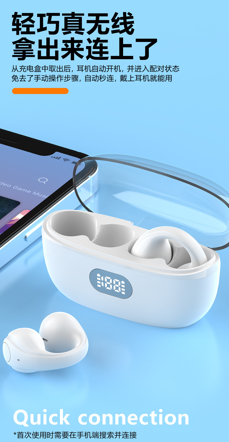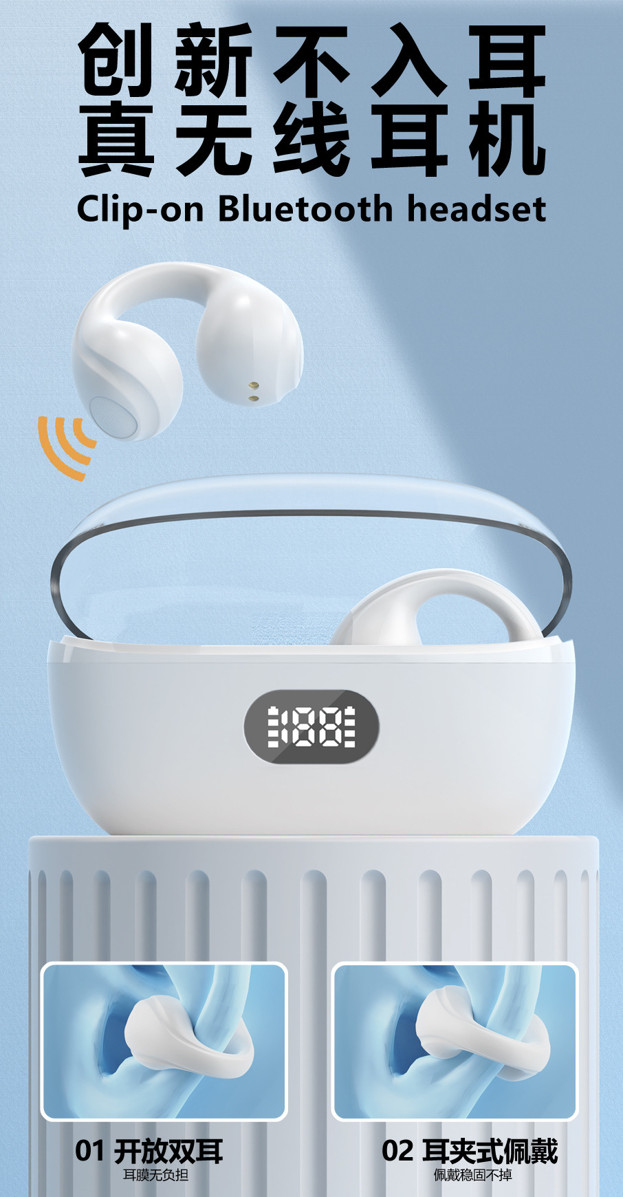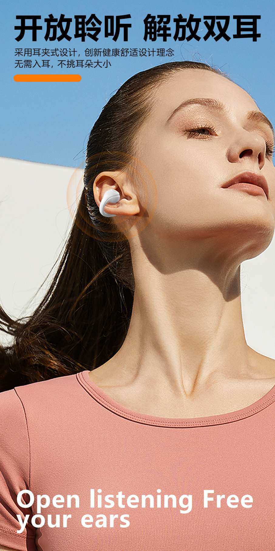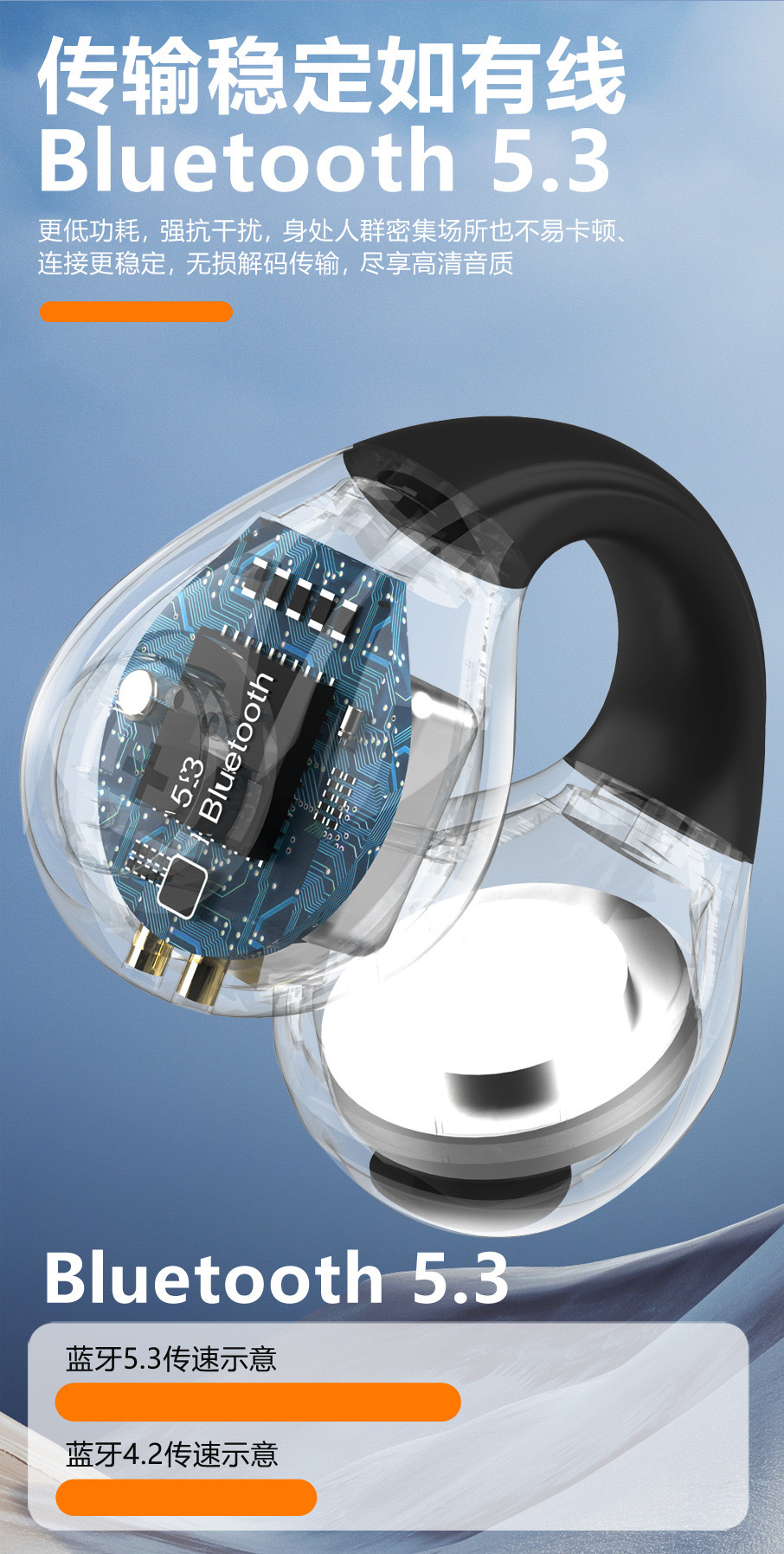 Audífonos Bluetooth Transfronterizos para Comercio Exterior, Tipo Clip, TWS, Inalámbricos Deportivos 5.3, Venta al por Mayor para Comercio Electrónico en TikTok, Modo de Suspensión.