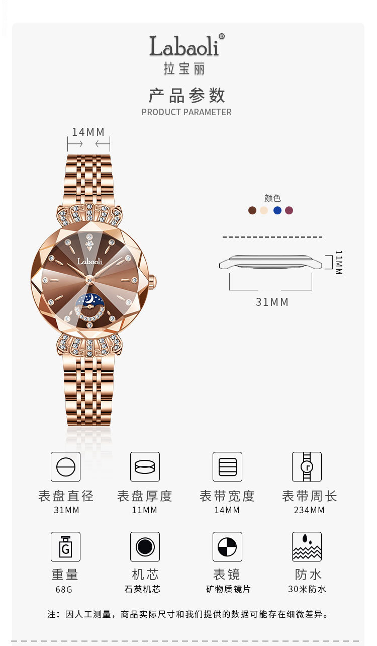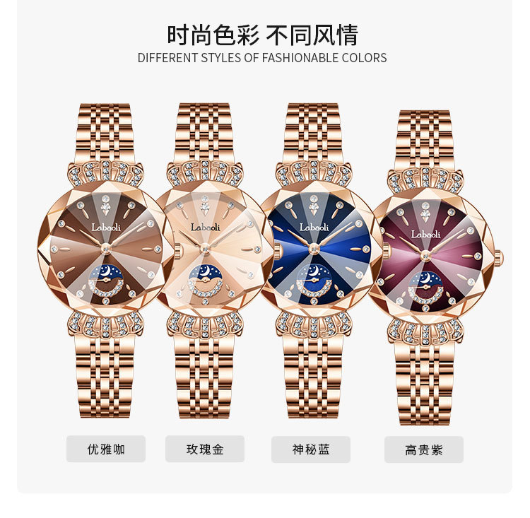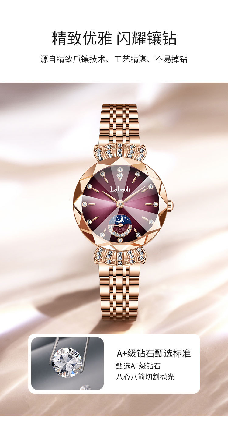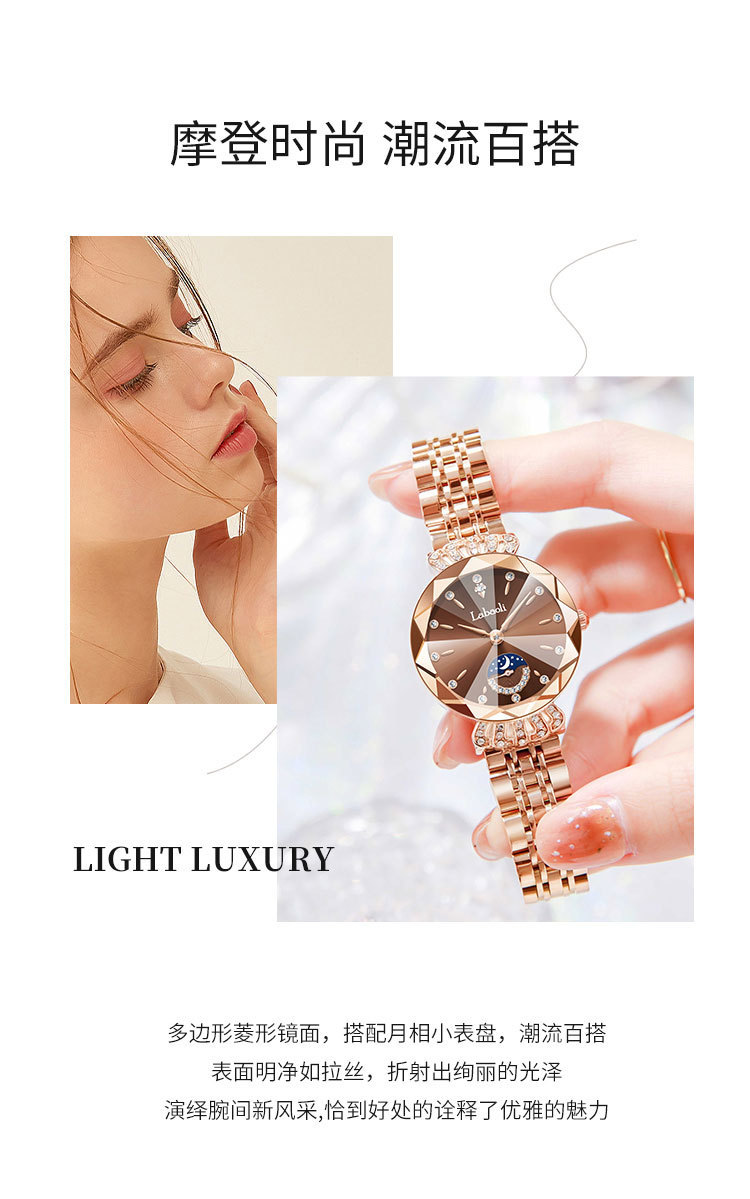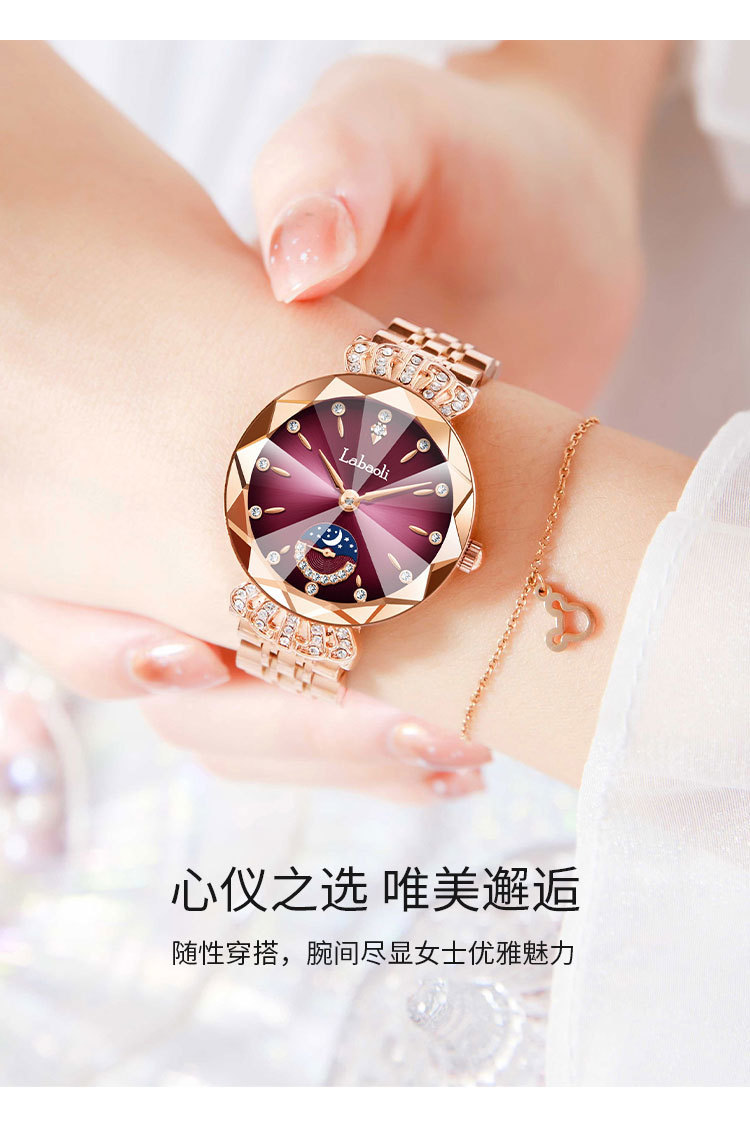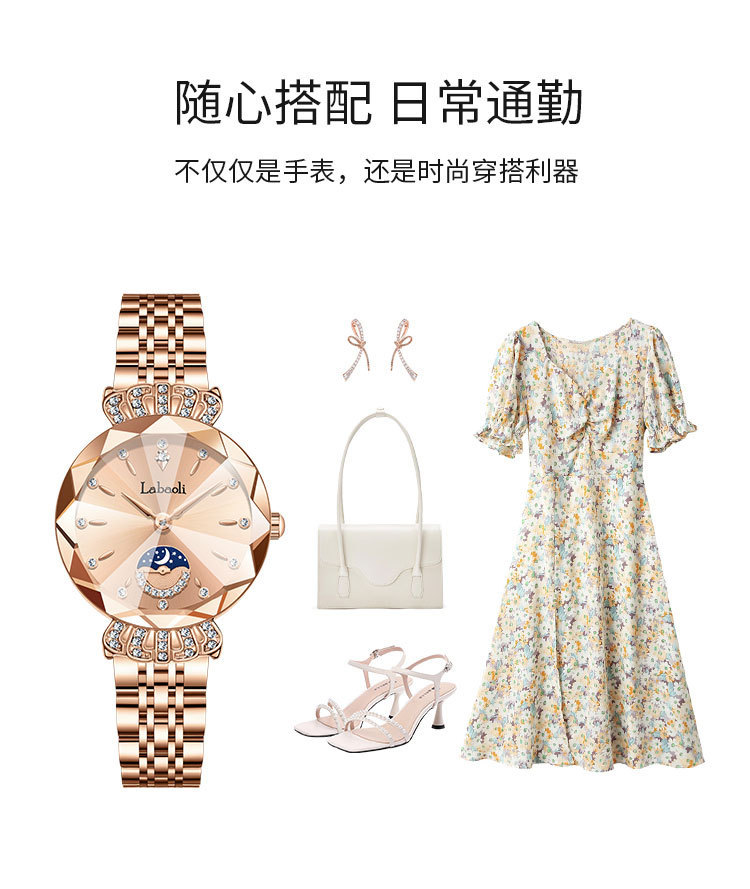 Laboli reloj de mujer en vivo popular Reloj de segunda placa pequeña para mujer con diamantes incrustados Reloj de cuarzo impermeable de moda de nicho de lujo ligero