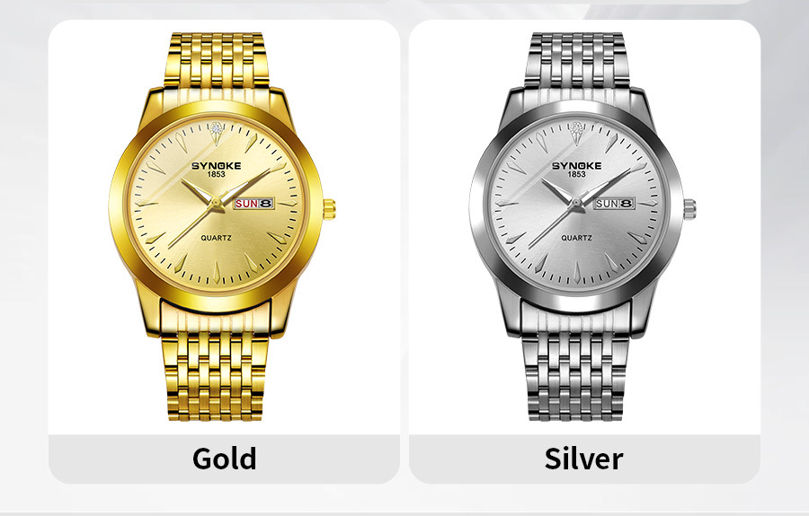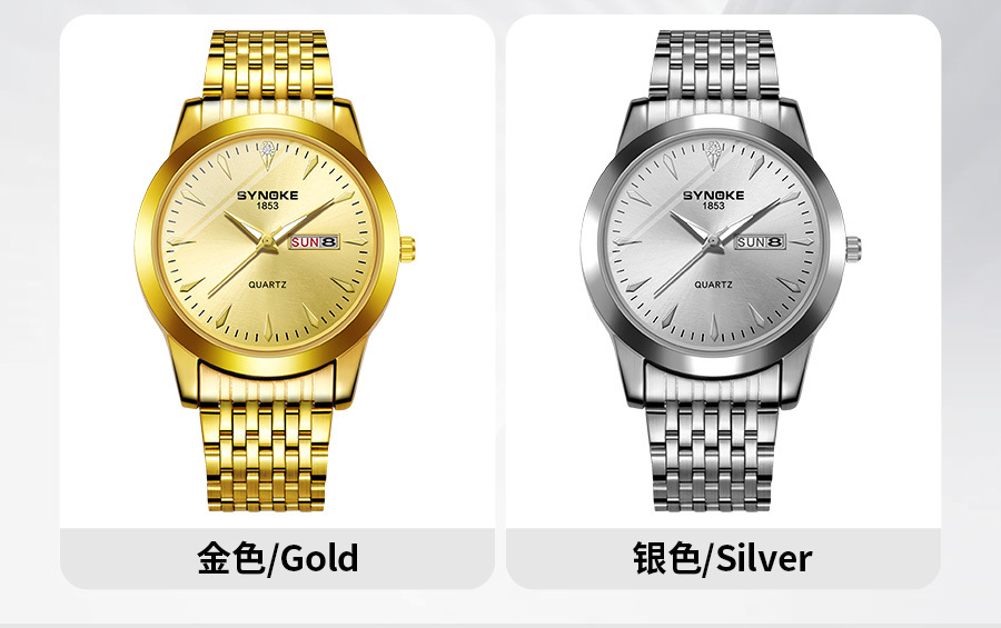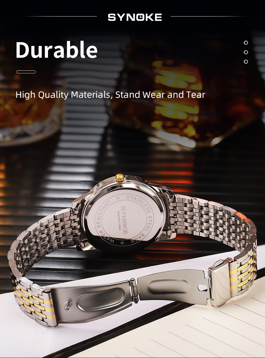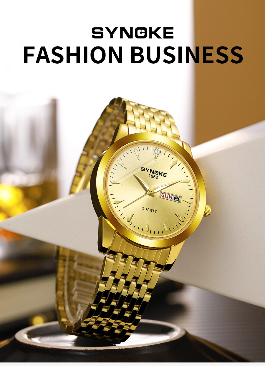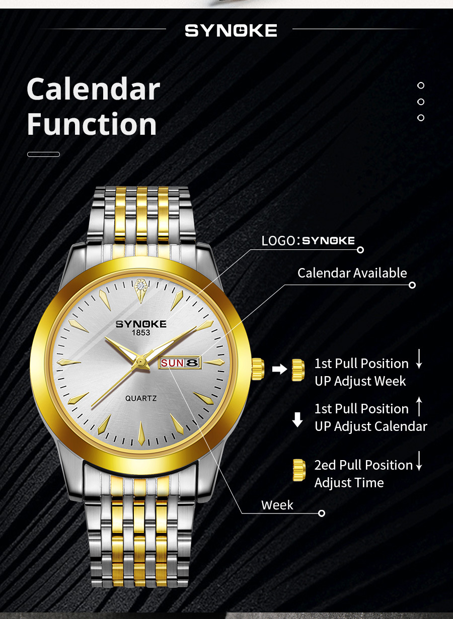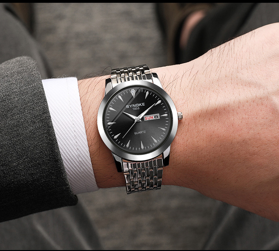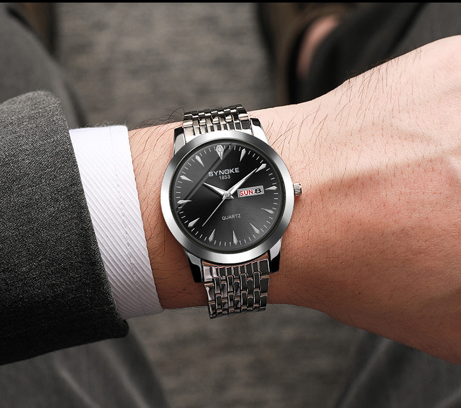 Reloj de cuarzo de negocios SYNOKE doble calendario aleación reloj casual moda clásica correa de acero reloj de los hombres