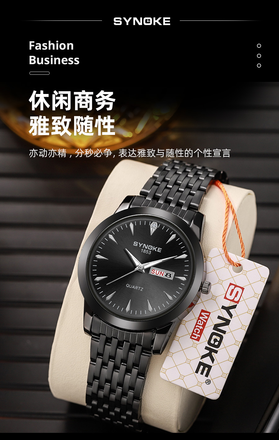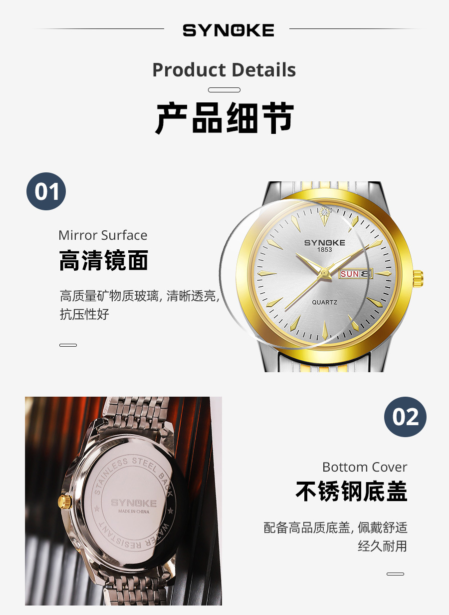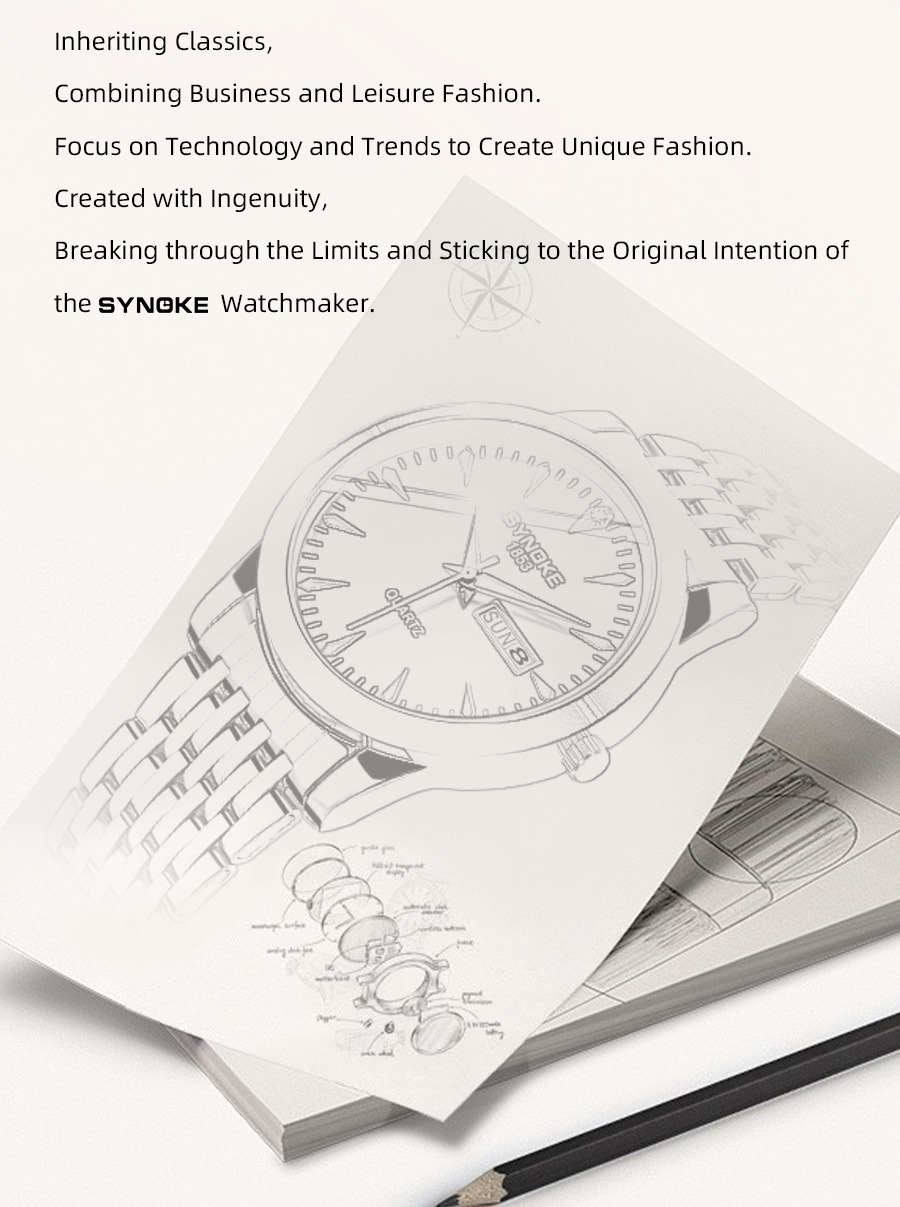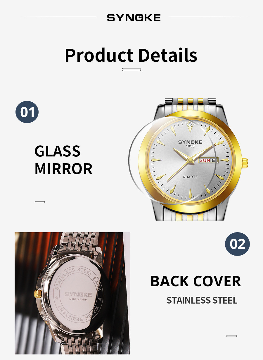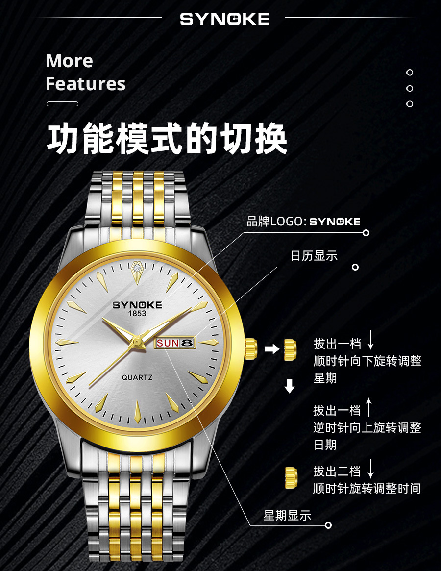 Reloj de cuarzo de negocios SYNOKE doble calendario aleación reloj casual moda clásica correa de acero reloj de los hombres