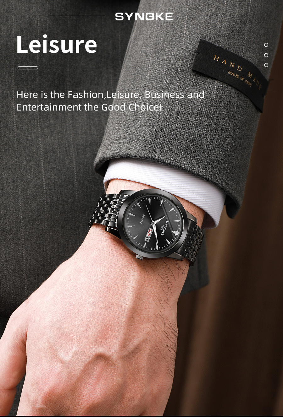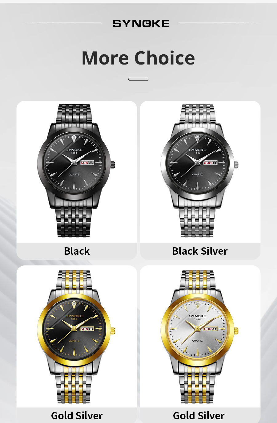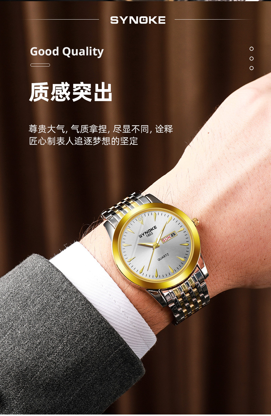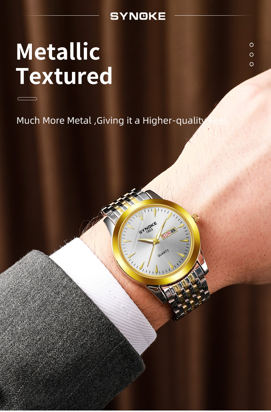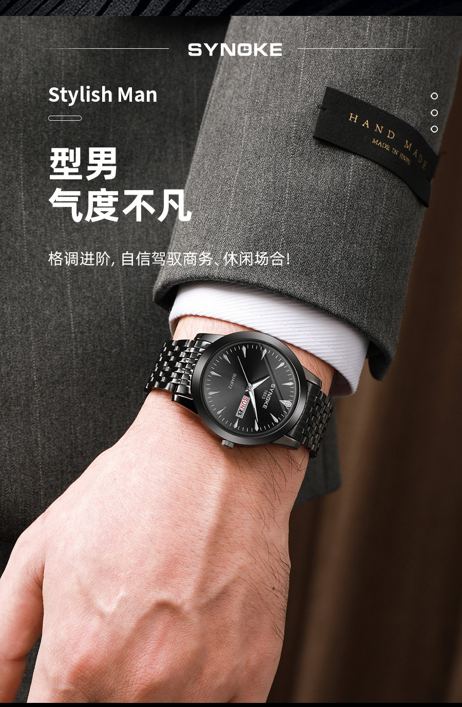 Reloj de cuarzo de negocios SYNOKE doble calendario aleación reloj casual moda clásica correa de acero reloj de los hombres