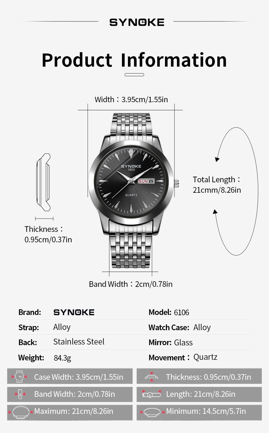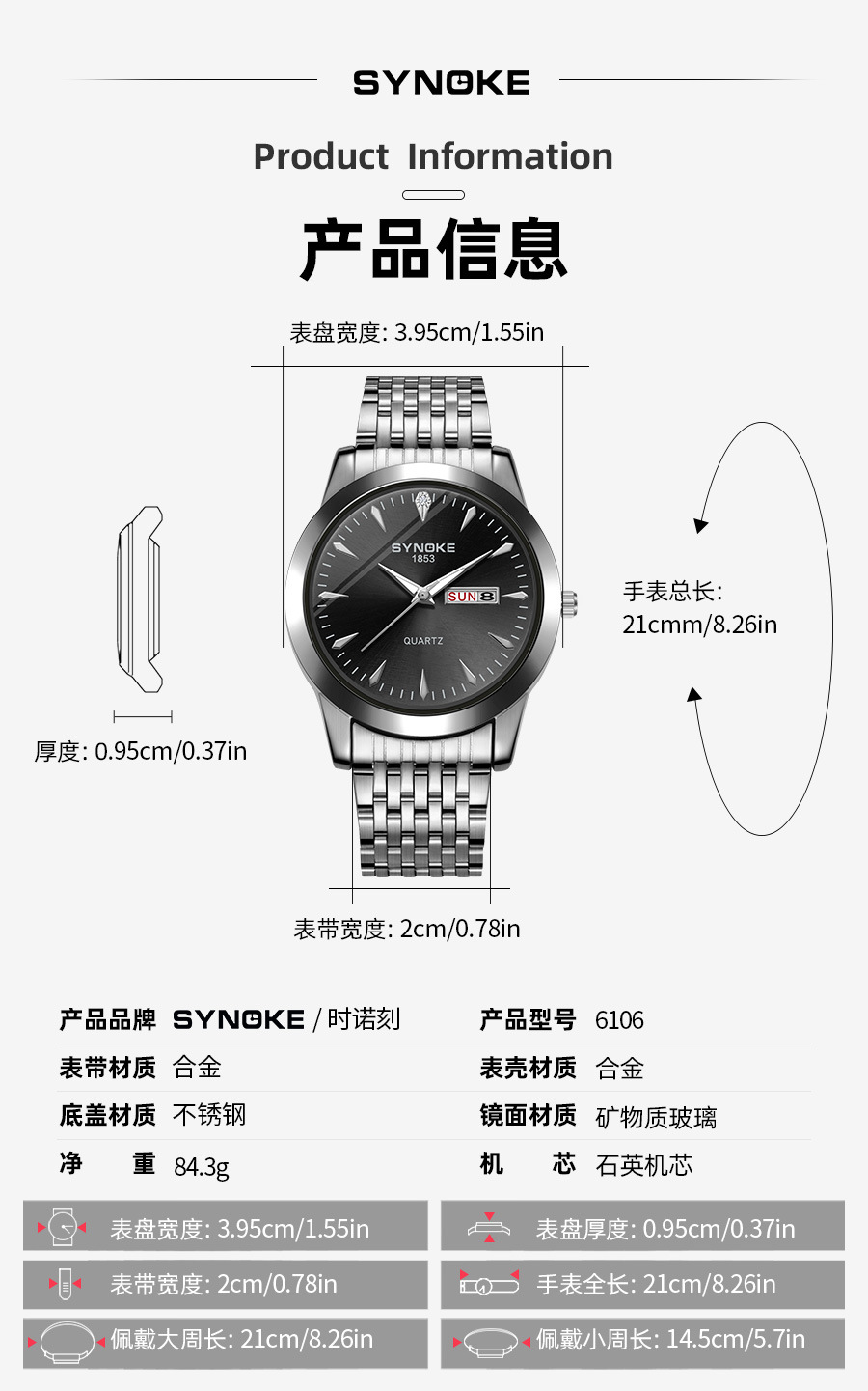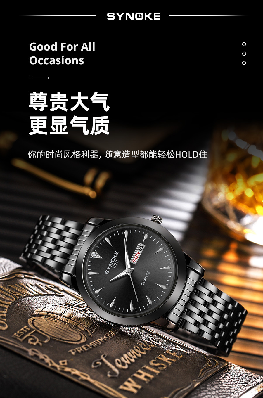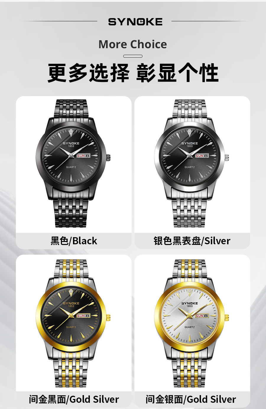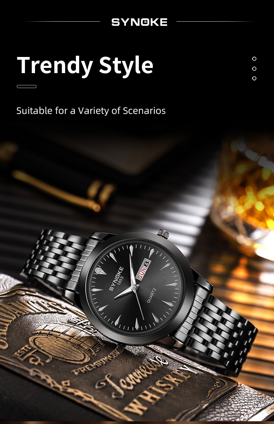 Reloj de cuarzo de negocios SYNOKE doble calendario aleación reloj casual moda clásica correa de acero reloj de los hombres
