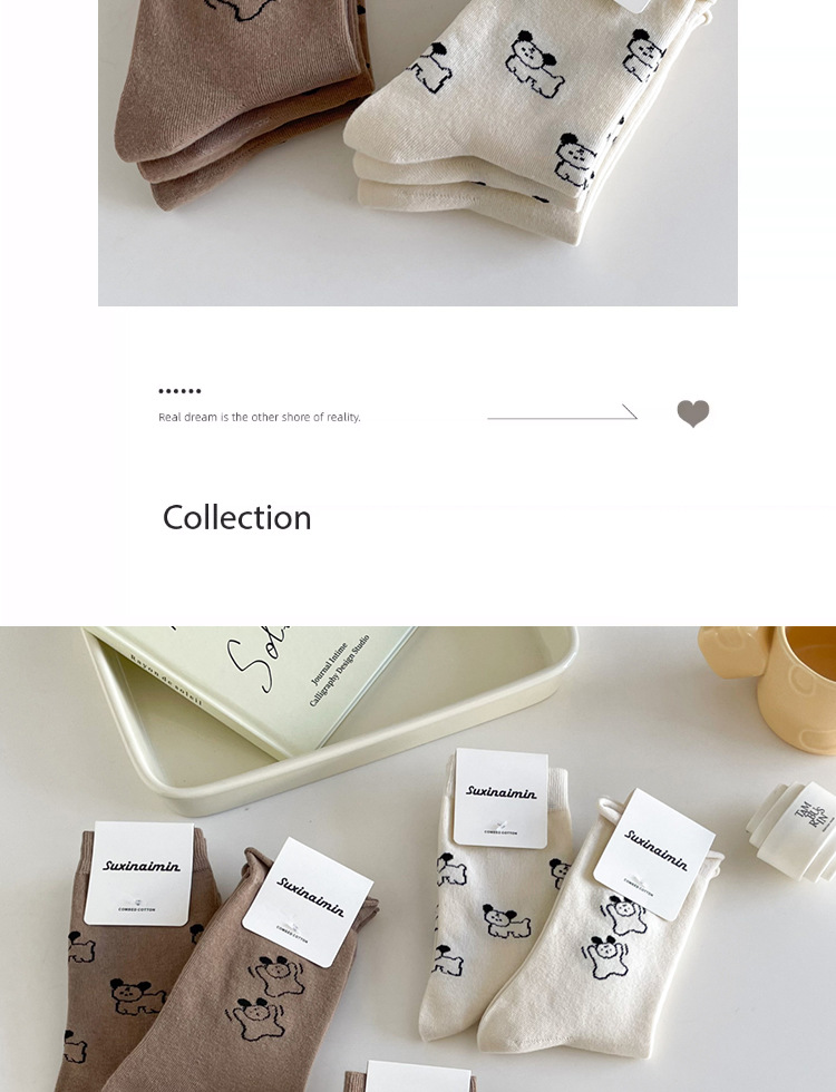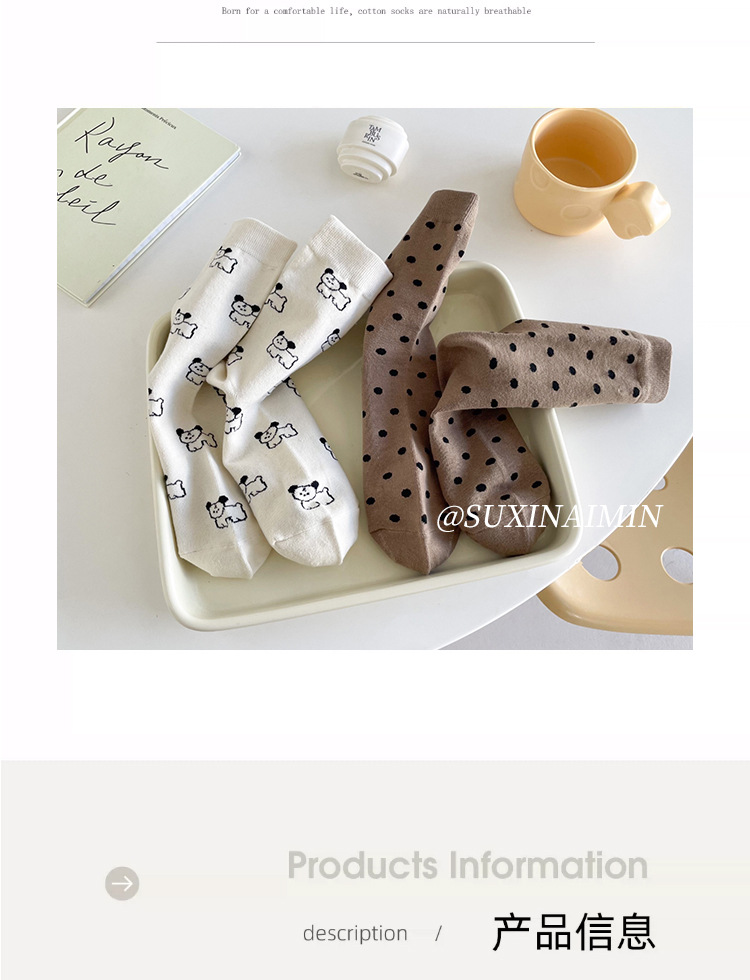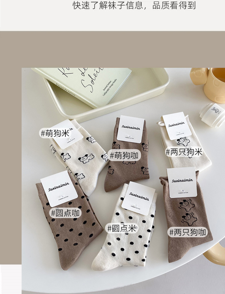 Suxinaimin Otoño e Invierno de dibujos animados perro lindo mediados de la pantorrilla calcetines de longitud niñas todo partido calcetines de moda Maillard usar calcetines
