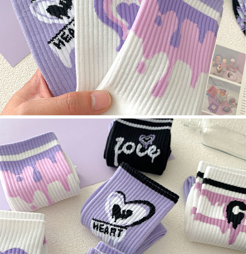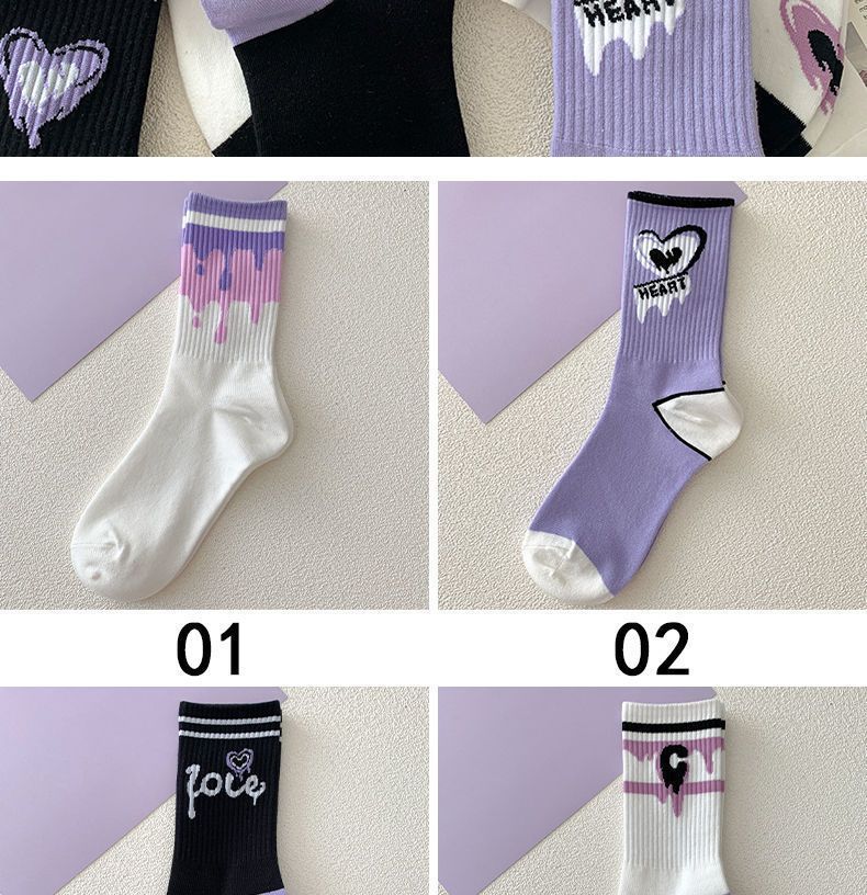 Calcetines de amor púrpura verano Otoño e Invierno moda de media pantorrilla letras lindas de flores simples ins moda transmisión en vivo transfronteriza